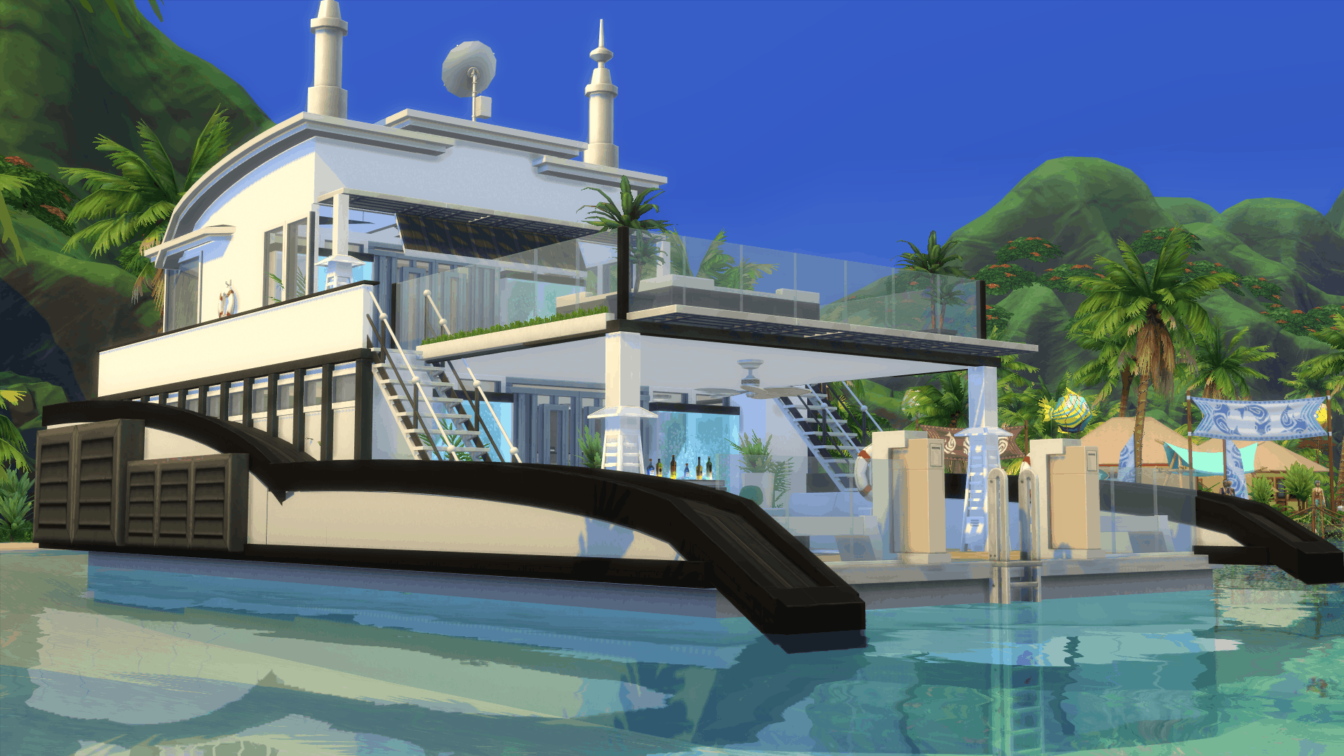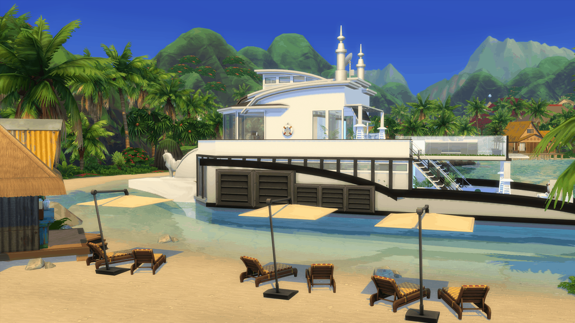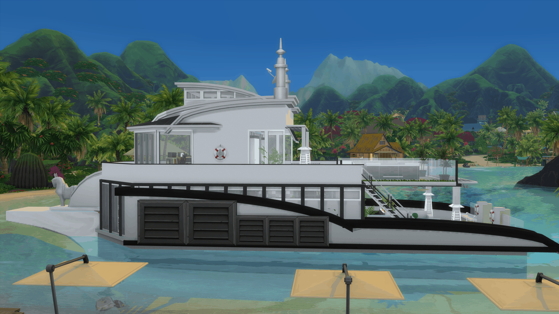 Made a family yacht for 3 sims. Nice living space in the center of Sulani. You can hang out on the yacht or you can just go and enjoy the nearby beach and lay down on the laying chairs with a nice alcohol free cocktail.