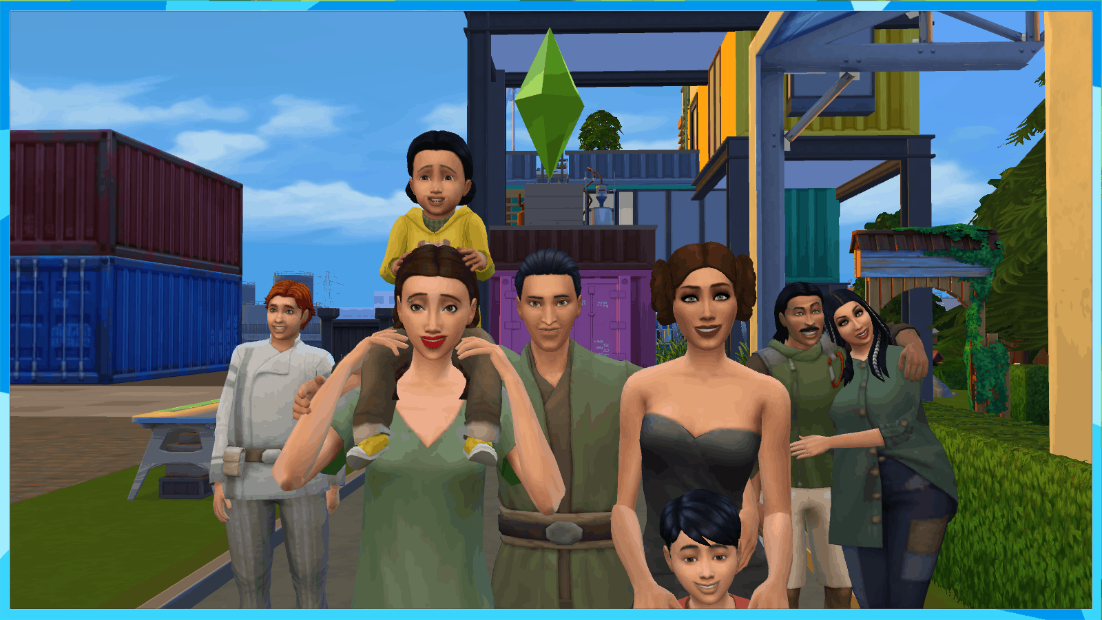 Hello, guys. So, I’m uploading the current generation of my legacy. I’ve completed the Journey to Batuu with Attila, Harry, Halia and Katy. By the way, Katy wasn’t in my last upload, because she was born after i uploaded that version of my legacy fam. She’s the youngest daughter of Jeb and Moana. On the “kids”… Atilla’s daughter Aily is the toddler (his other father is LT. Agnon from Batuu), Lorn is the kid and son of Halia (his father is none other than Kylo Ren himself), the teen girl with braids is Isond which is Harry’s daughter (and Rey’s daughter too) and the young adult male is Reylan, son of Katy (with Vi Moradi). I’ve named them with all the Batuu townie names as ideas, I’ve picked my favorites. I love that you can see that Aily looks like her father, even though she’s a little toddler, and Isond looks exactly like her father too. haha Reylan looks more like Vi Moradi, while I can’t see anything from Halia or Kylo Ren in Lorn. Maybe he’ll look liek one of the two when he grow up.
