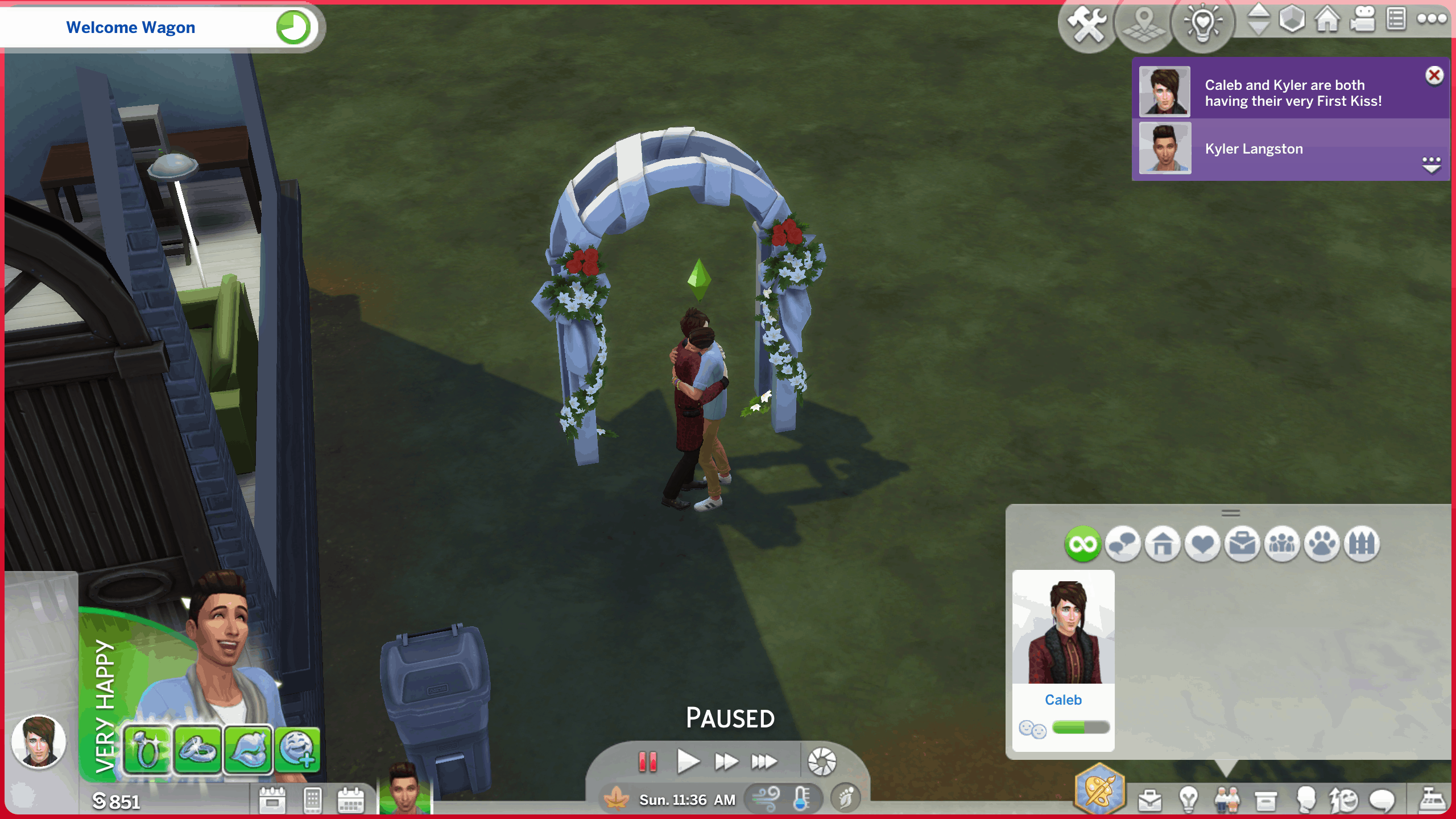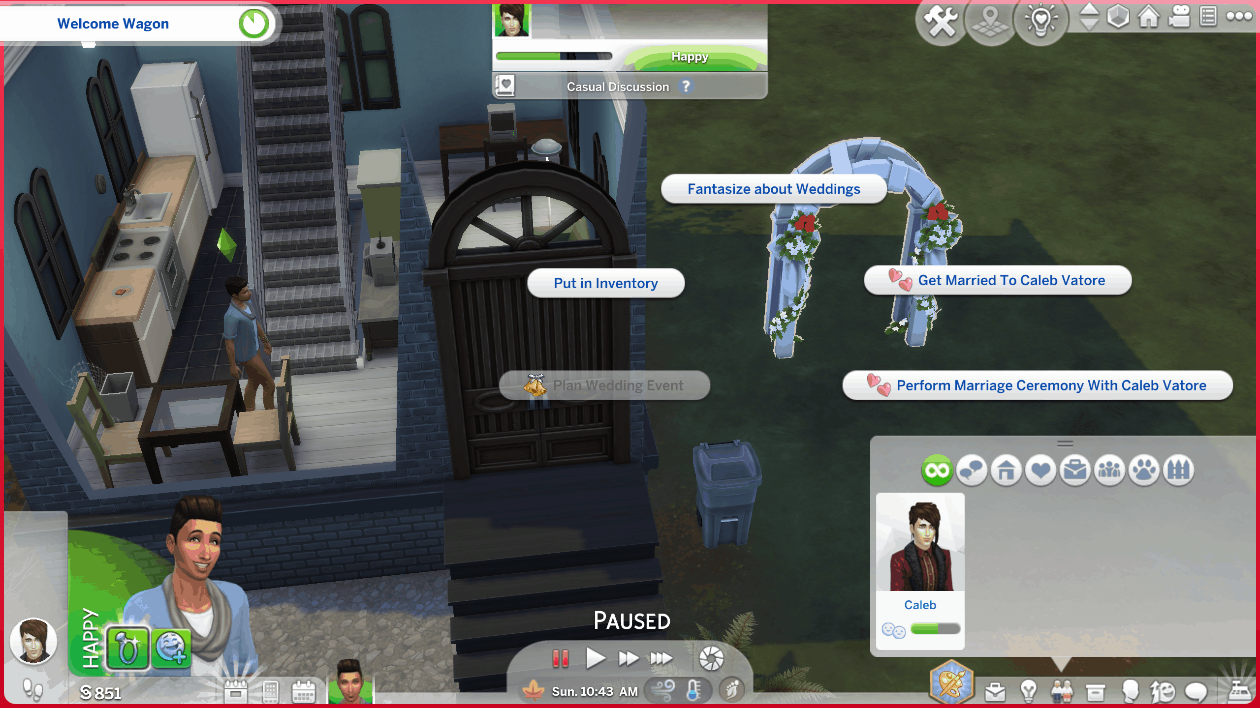 NOTE: If you elope, or use the normal marriage ceremony interactions, there will be a small increase in romantic relationship. If you want to avoid activating the pink bar, use the “perform marriage ceremony” interaction.