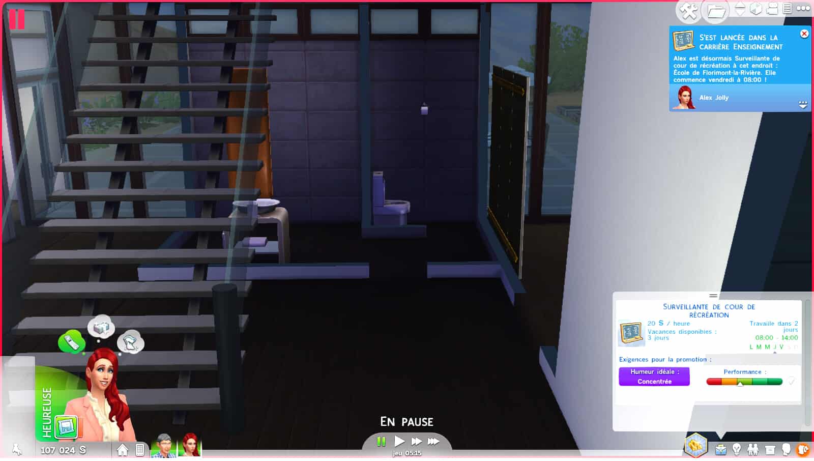 This career hasn’t daily task, and the ideal mood is Focused ( not playful, for me, School is not cool XD). To progress in this career, you’ll need to skill up Charisma and Logic. Oh, and you’ll need to love kids and teens XD !