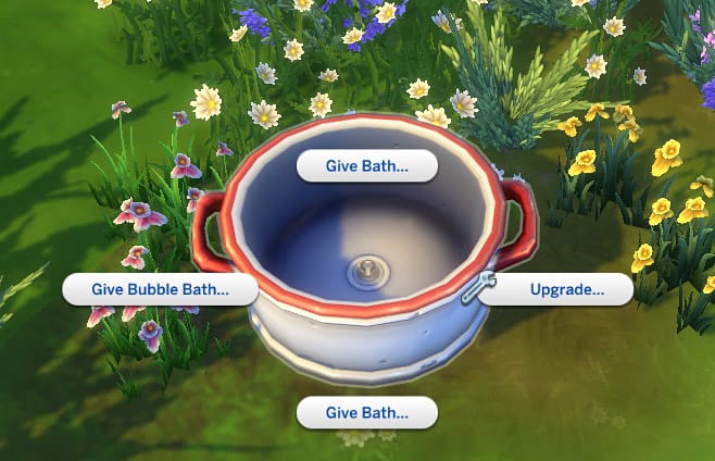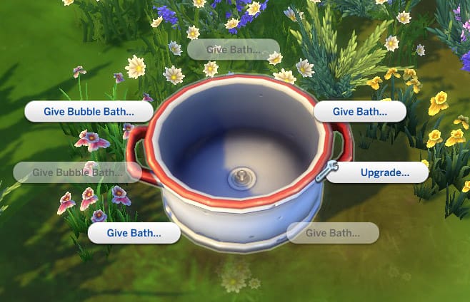 – The footprint arrow indicates the best position for your sims to access the tub so toddlers will be placed in the center. Toddlers placed from the other side will be slightly off center.