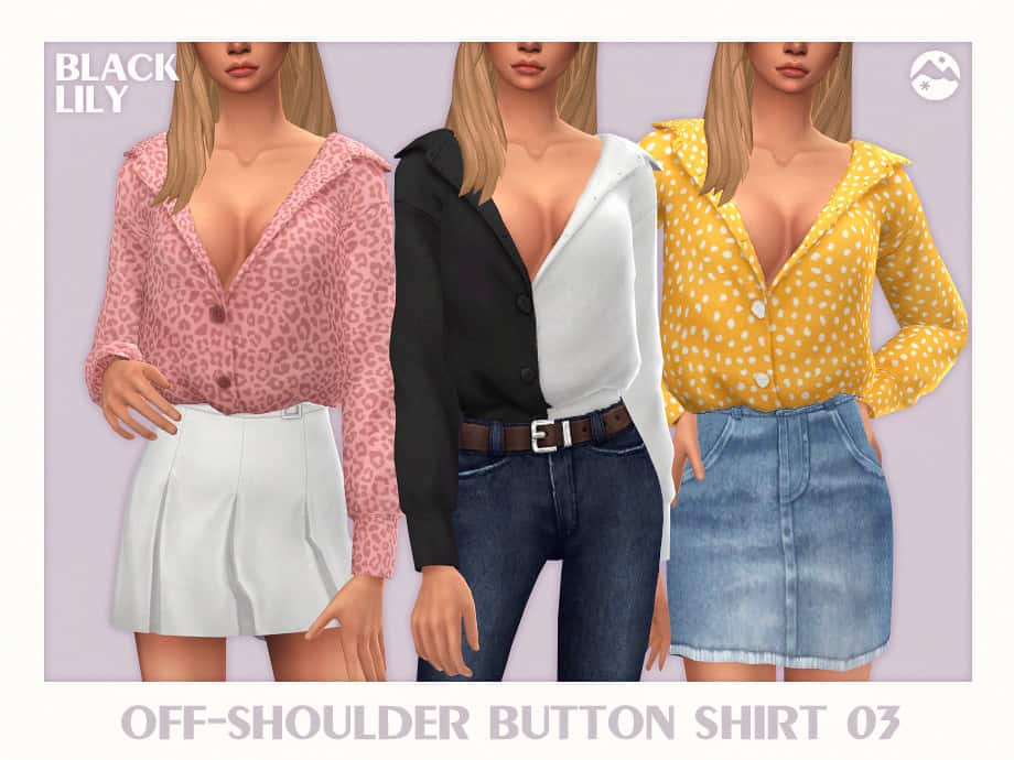 Our database contains only the highest quality Sims 4 mods that meet the most stringent requirements, like Off-Shoulder Button Shirt 03 Sims 4 Mod. This guarantees that our visitors have access to the most exclusive and useful files.