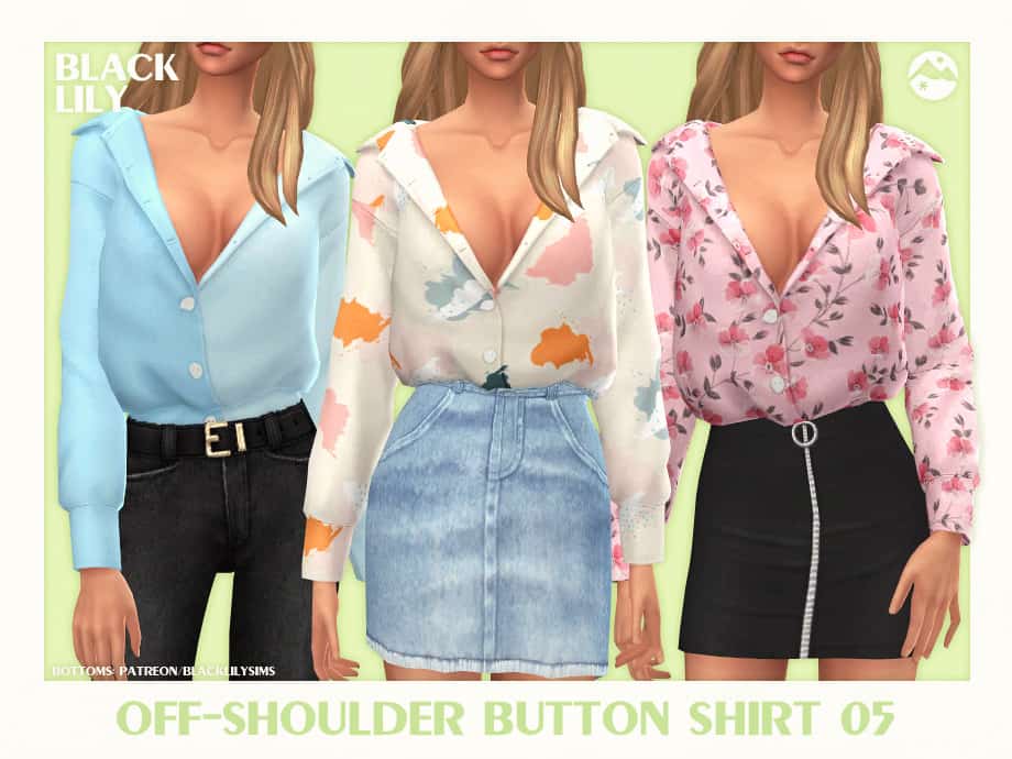 Our database contains only the highest quality Sims 4 mods that meet the most stringent requirements, like Off-Shoulder Button Shirt 05 Sims 4 Mod. This guarantees that our visitors have access to the most exclusive and useful files.