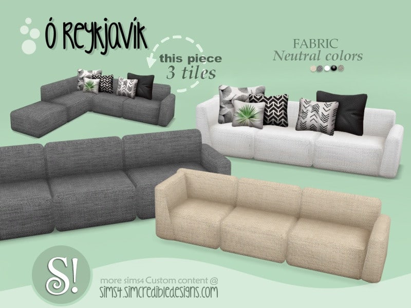 Our database contains only the highest quality Sims 4 mods that meet the most stringent requirements, like Oh Reykjavik regular sofa (neutral tones) Sims 4 Mod. This guarantees that our visitors have access to the most exclusive and useful files.