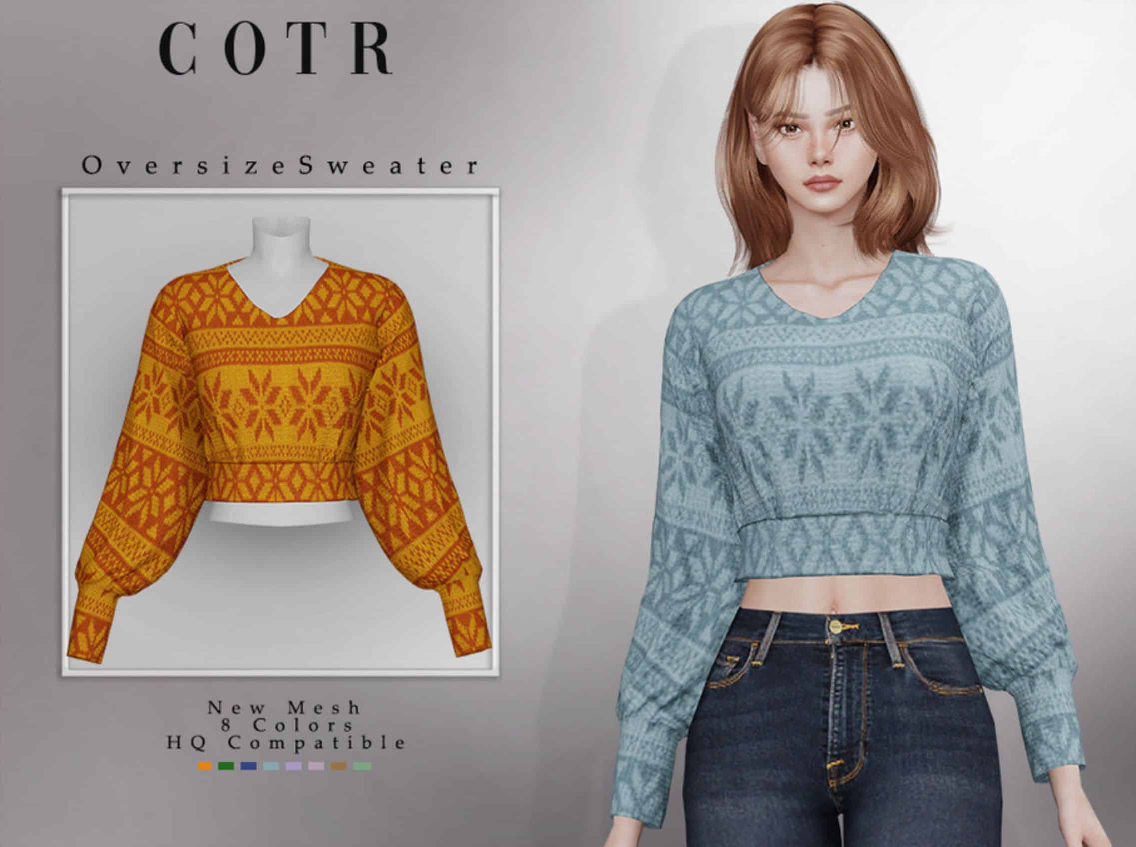 Our database contains only the highest quality Sims 4 mods that meet the most stringent requirements, like Oversize Sweater Sims 4 Mod. This guarantees that our visitors have access to the most exclusive and useful files.