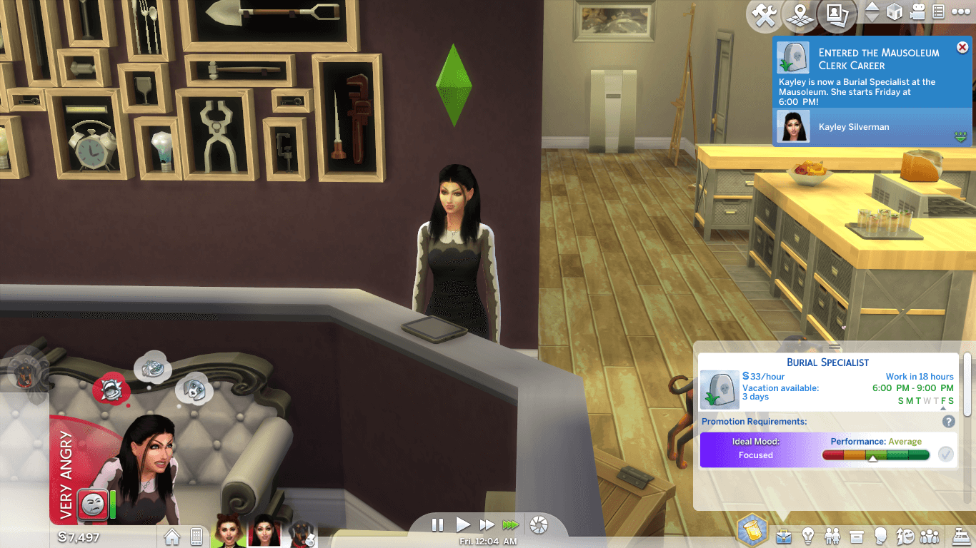 In need of a job without the stress of working with living Sims? If so, then a job as a Mausoleum Clerk may be right for you.