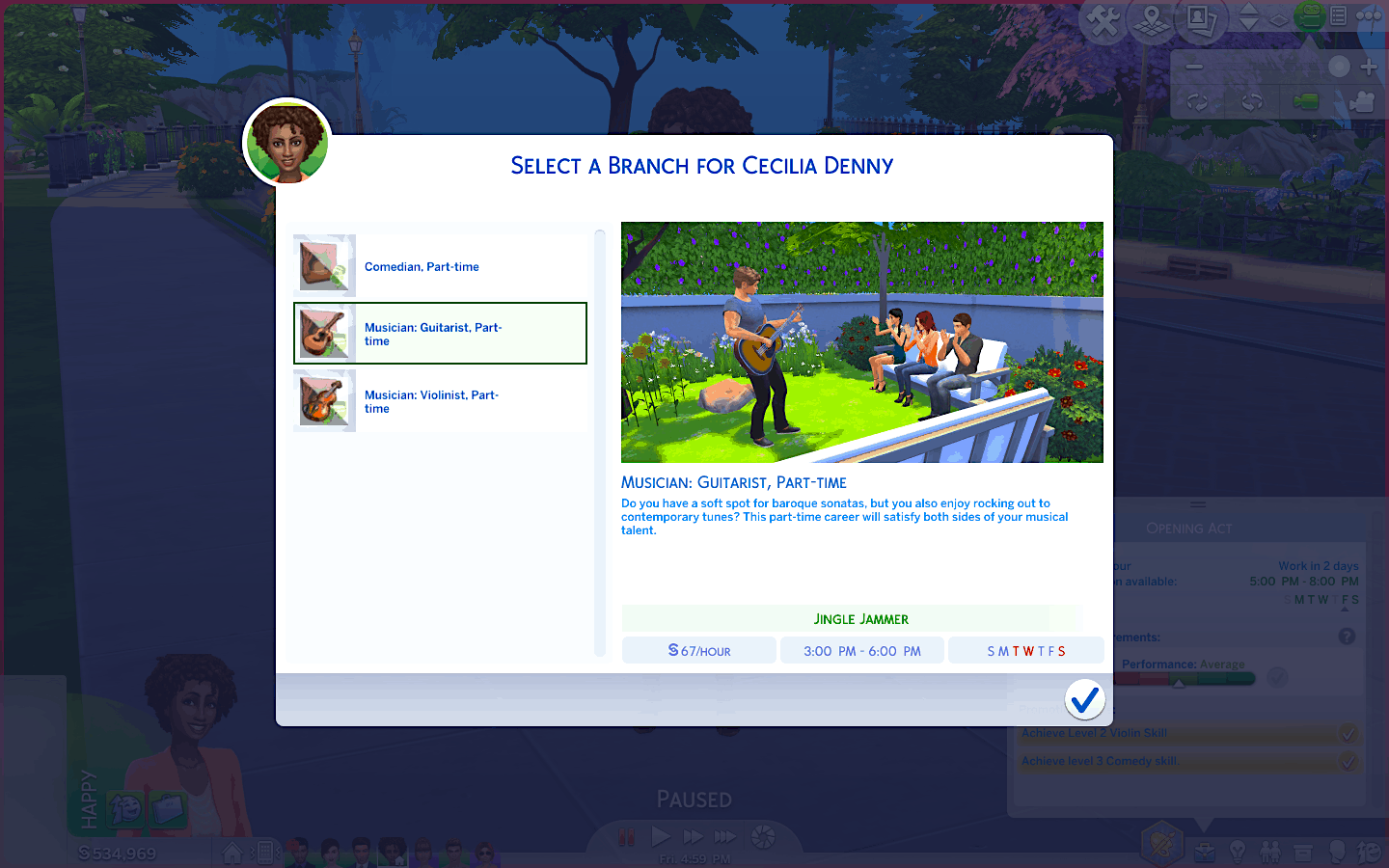 – For both versions: In the base game, you can choose between Guitar and Violin within the same career. That was impossible to recreate, so I made 2 separate tracks: one for Guitar, and one for Violin.