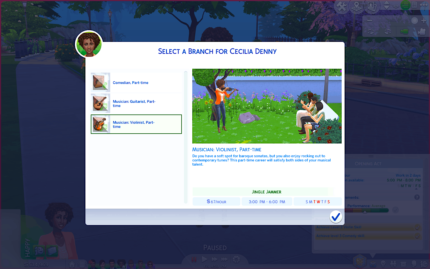 Level 8: Symphonic String Player Your music has the power to sway the emotions of even the most cold-hearted Sim. Make every performance unforgettable.