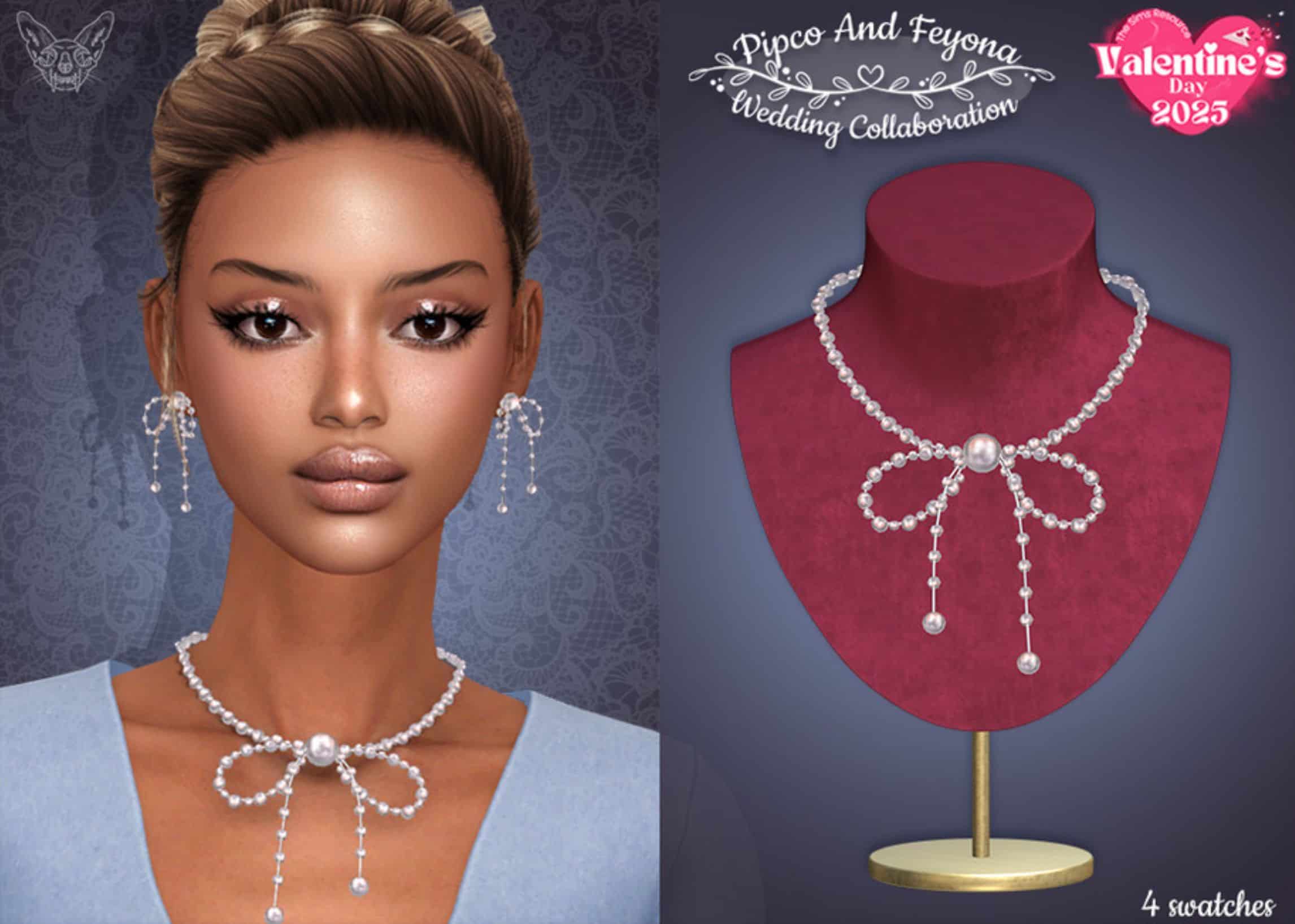 Pearl Bow Wedding Necklace created for a collaboration with Pipco come with 4 swatches and matching bow earrings that can be downloaded separately.
