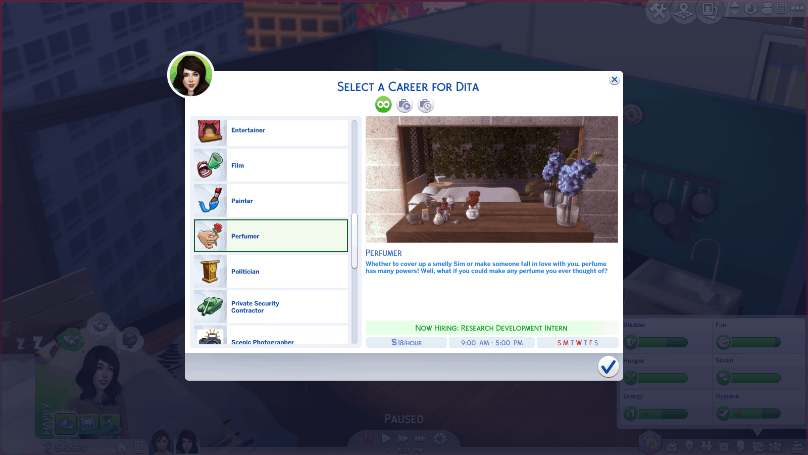 Sul sul! This is my first cc and I’m super excited to share with you a custom career of a Perfumer!