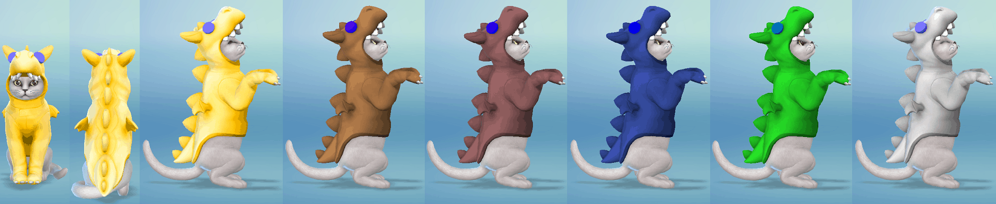 These are the canon Pernese dragon colors, complete with “compound” single-color pupilless eye, but unfortunately not with forked tail. It comes in all six canon colors, including white – gold, bronze, brown, blue, and green. They’re a lot of fun, and look cute on your standard cat. Usable by male and female cats, adult and elder. Colors are not restricted by the cat’s gender.