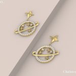 This is a galactic pair of star and diamond-studded Saturn pendant earrings.