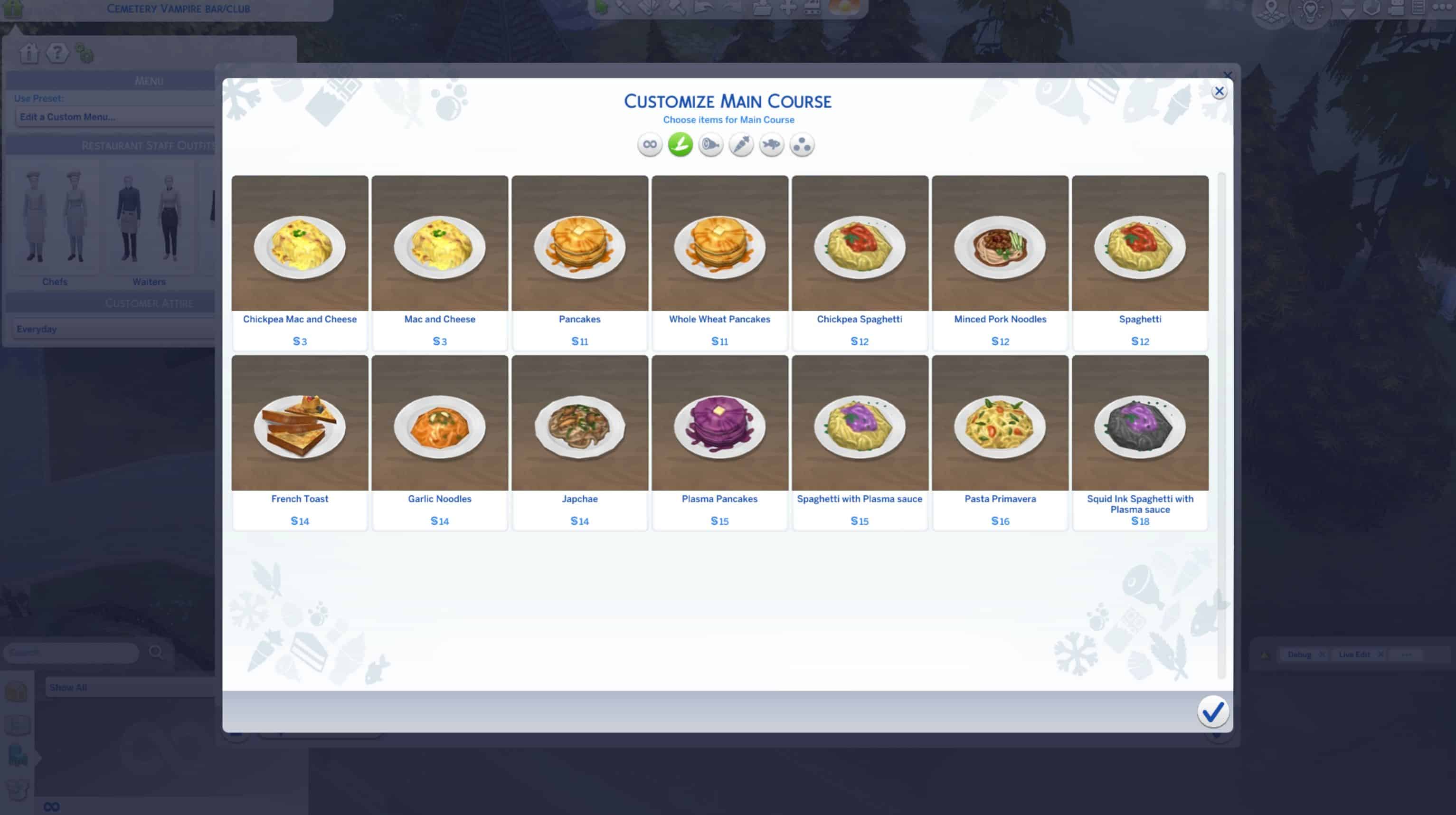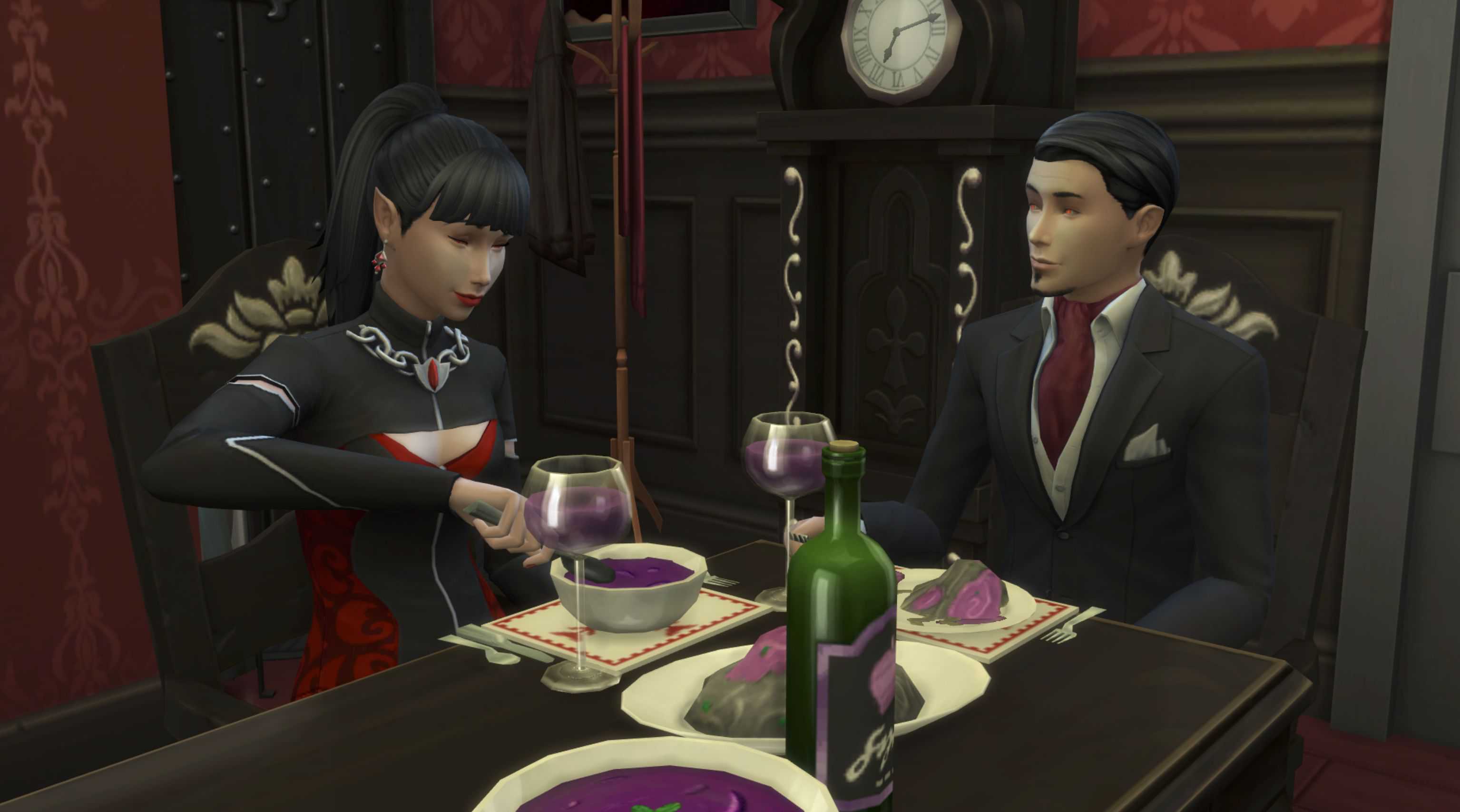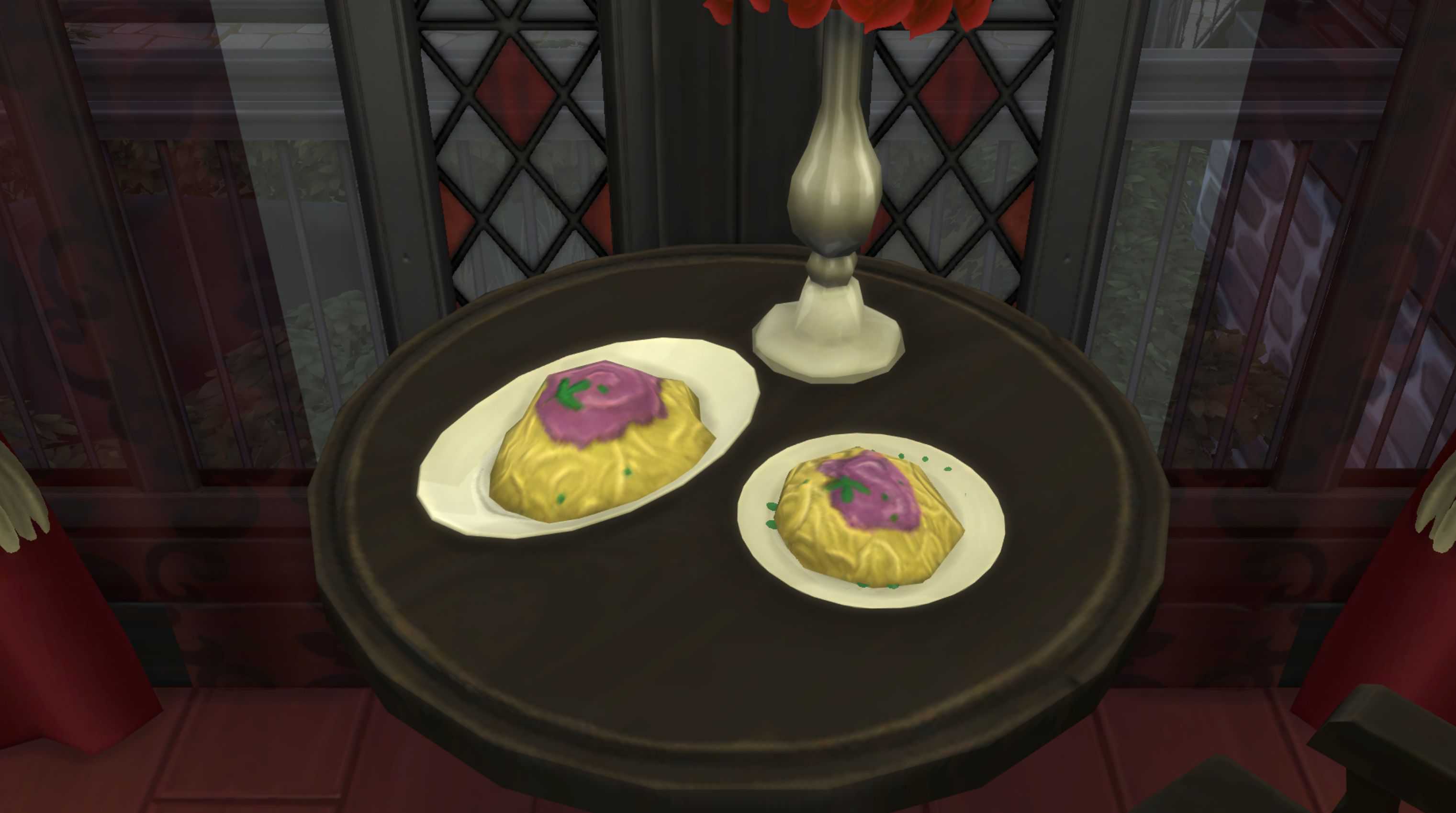 The recipes are still not as filling as normal human food, but they will satisfy a fair amount of thirst for a vampire sim, far more than the base pack’s plasma salads will provide.