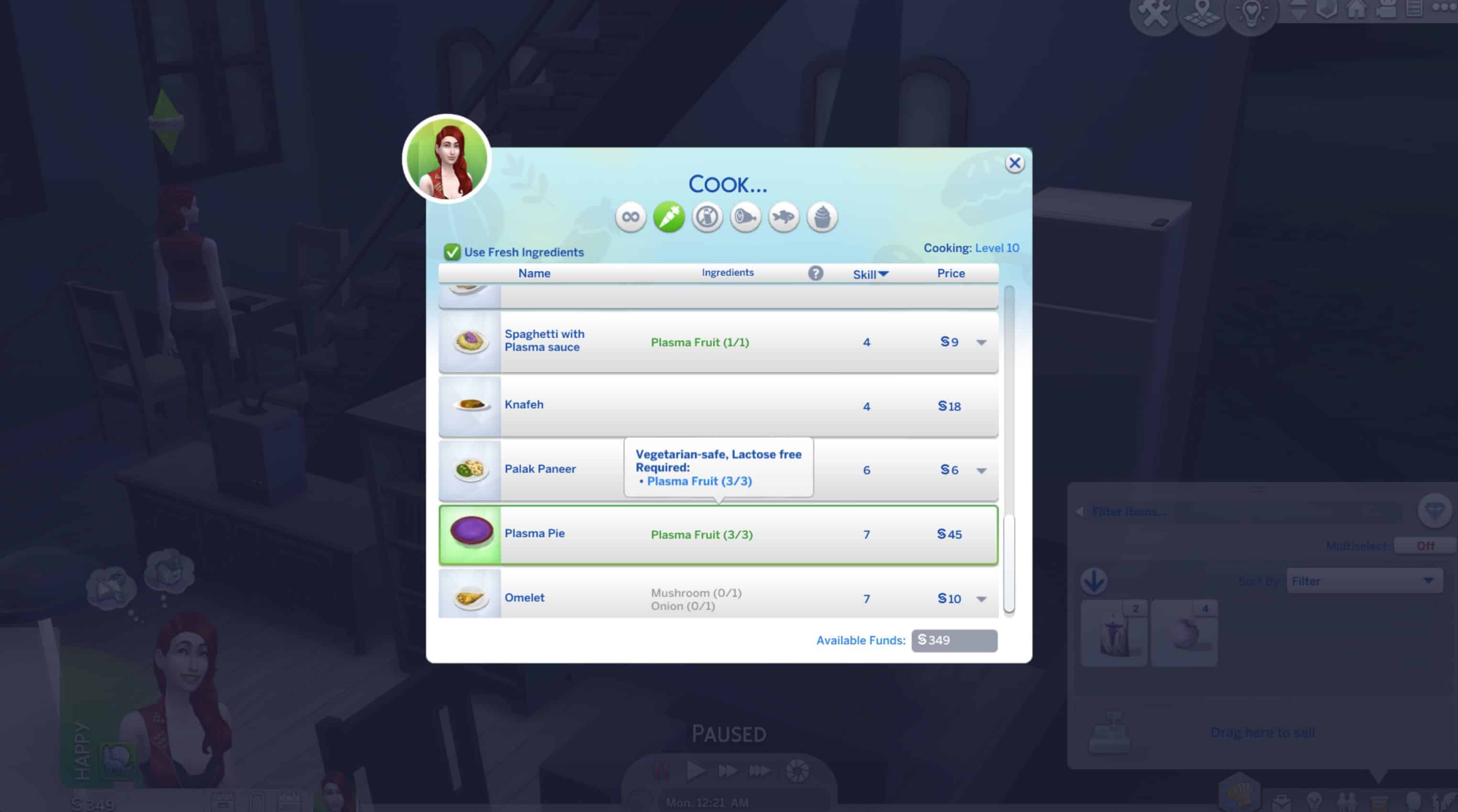 Similar to the Plasma Salad, the sim cooking it needs to unlock the necessary part in Vampire Lore before they can craft any of the plasma recipes.