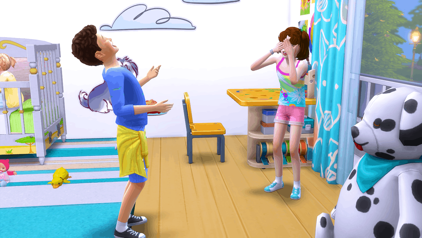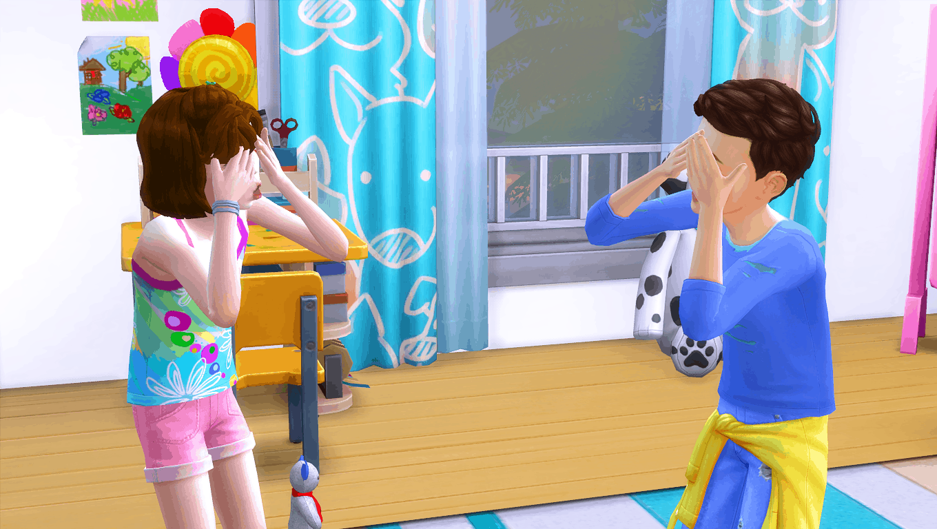 I increased the duration a little and converted the animation for toddlers. Not every animation is replaced. When sims are seated they still do EA’s original animations of Make Funny Faces.