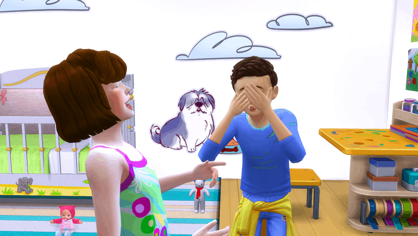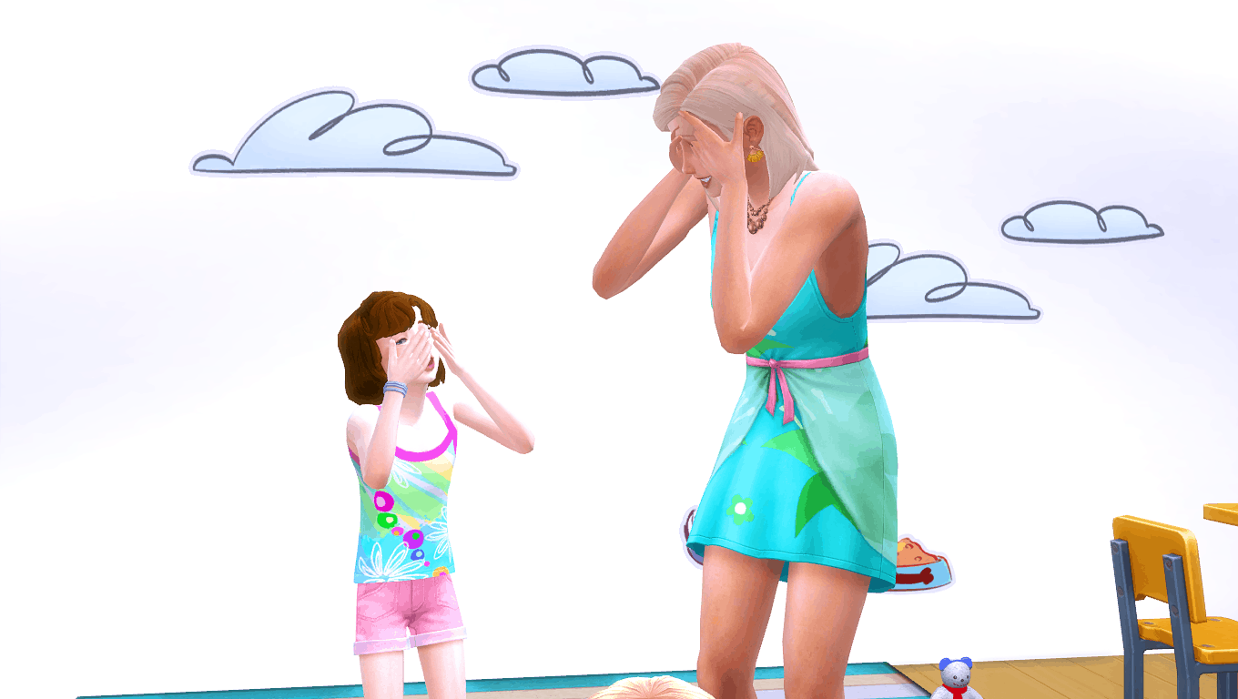This is an override mod to let Sims of all ages play Peakaboo with each other. It replaces EA’s interaction, Make Funny Faces, (Parenthood) with peakaboo animations. When children play with the stuffed animal, they do a peakaboo animation, and I think it is so cute and I wanted sims to play it together, and not only play it with the stuffed animal.
