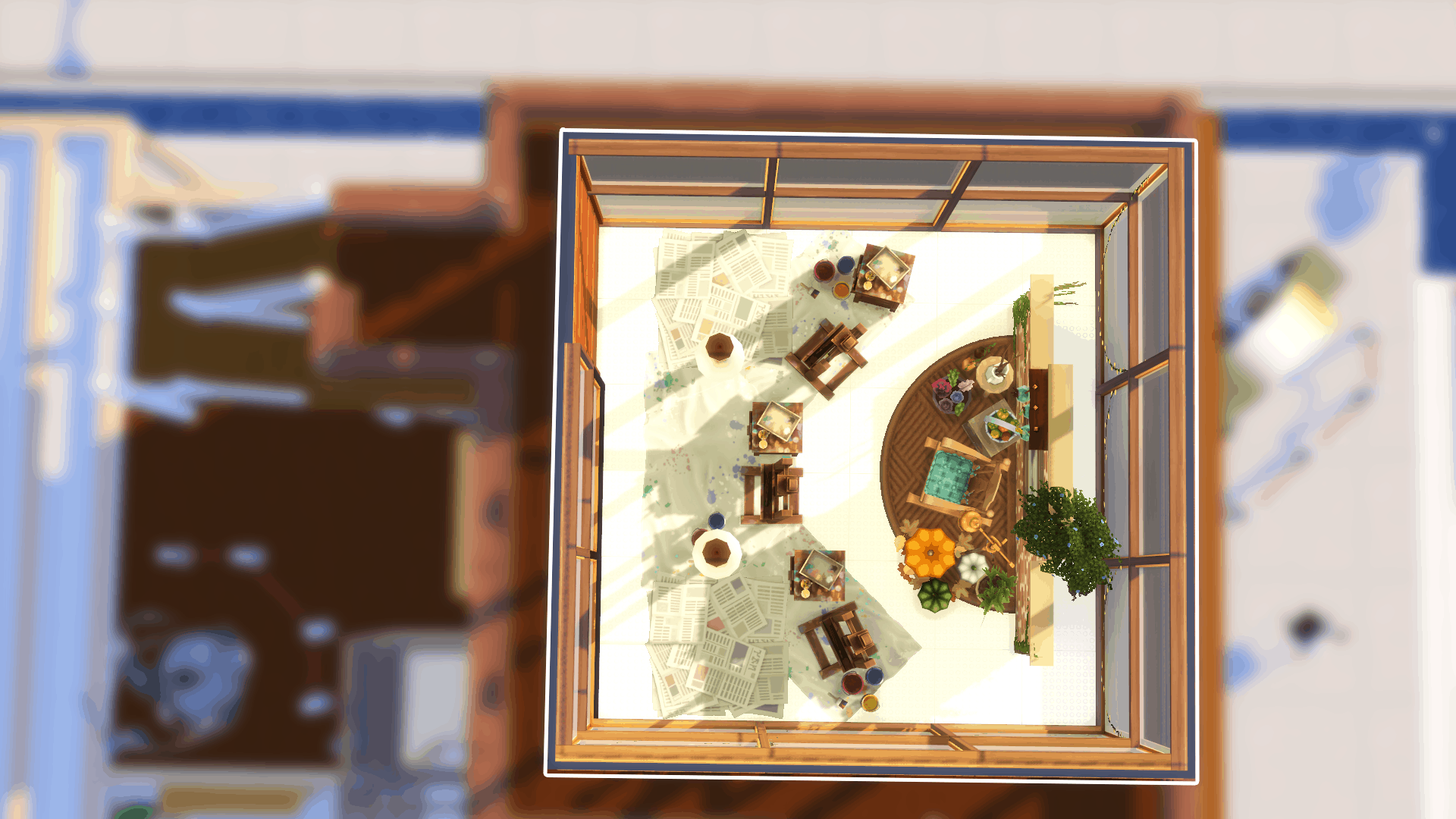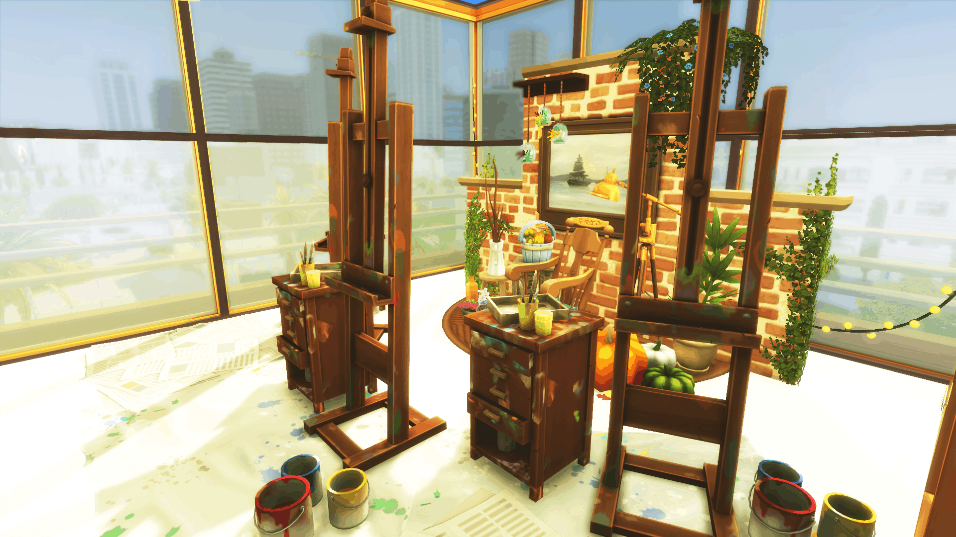 The third floor is an art class space where a still life reference can be found so that your Sim or Sims can paint with a reference.