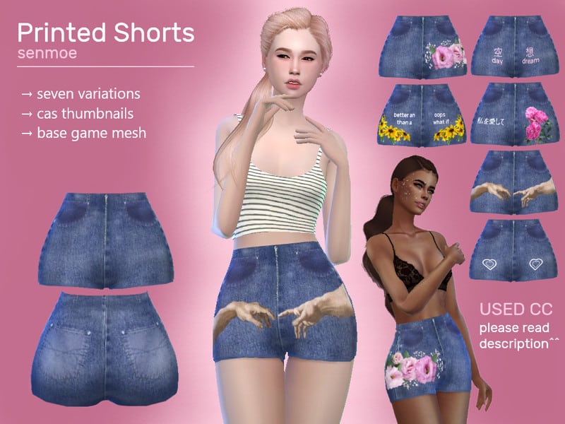 Our database contains only the highest quality Sims 4 mods that meet the most stringent requirements, like Printed Jeans Shorts Sims 4 Mod. This guarantees that our visitors have access to the most exclusive and useful files.