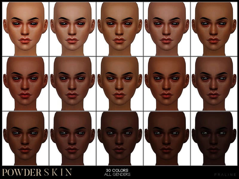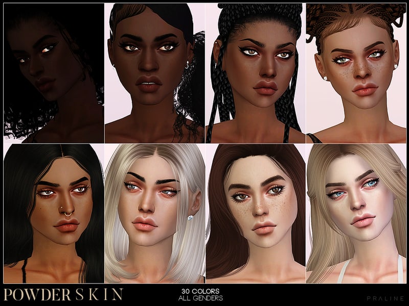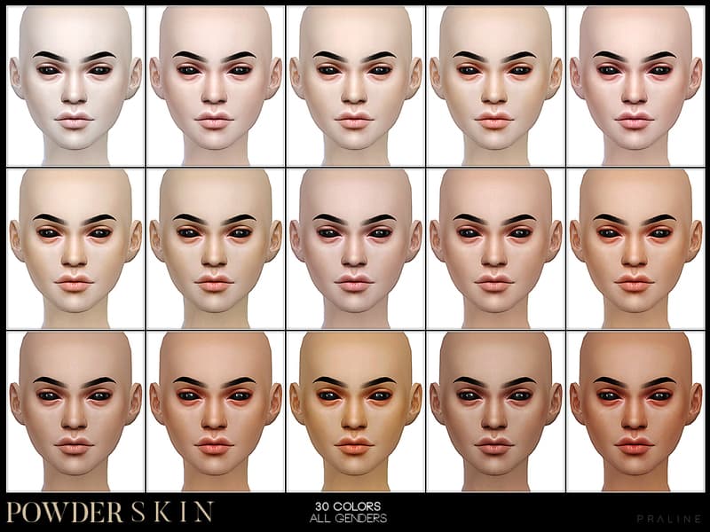 All of the 30 individual colors have some minor kind of transparency, which lets you adjust every color a bit, so it can be even darker or lighter, or have a colored tone like blueish pale, etc.. The possibilities of different shades are nearly limitless with this skintone set.