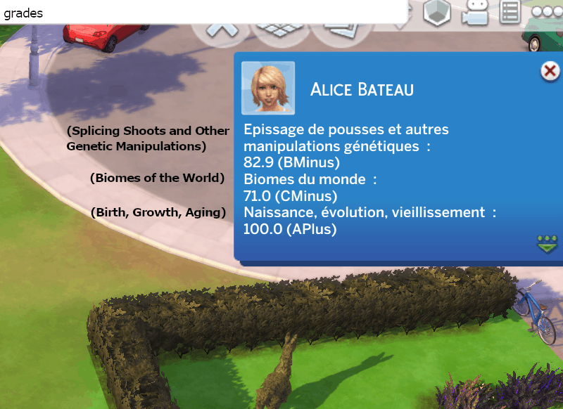 This simple script mod allows you to quickly check how the sim students in your active household are performing in each of their course.