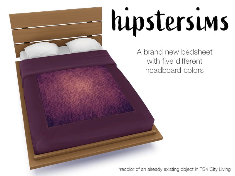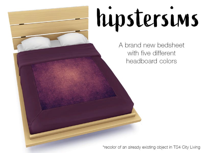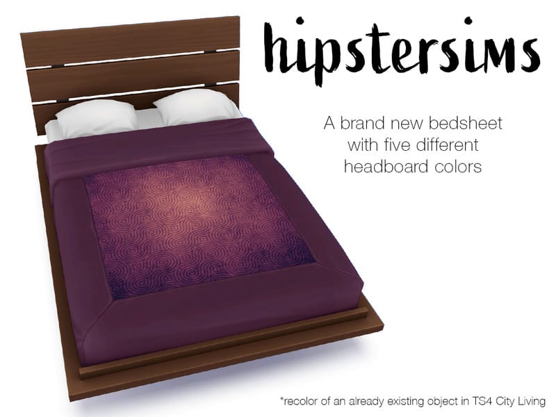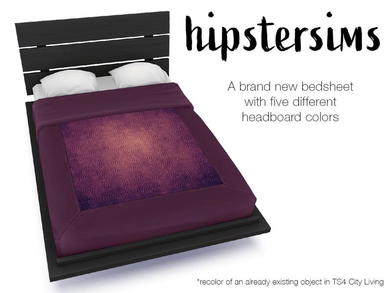 This is a bed from TS4 City Living. Aren’t you sick and tired of only having one sheet per headboard? This CC contains five different headboards (black, dark brown, semi-dark, light brown and light) and same sheets for them all. The limits are endless!