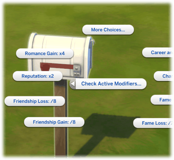 – You don’t need any Expansion, Game, or Stuff Pack, or Kits, or whatever to use this mod. Nothing will happen if you install a package file that changes a parameter linked to an extra content without having it. For example, if you install a Reputation modifier without having the Get Famous Expansion Pack, no changes will occur.