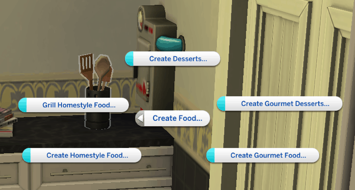 In order to use it, simply click on the object and select “Create Food” and pick from one of the categories “Dessert”, “Gourmet”, “BBQ”, “Gourmet Dessert” and “Homestyle”. You can also click “Create Drinks” to select from a menu of “Hot Drinks”.