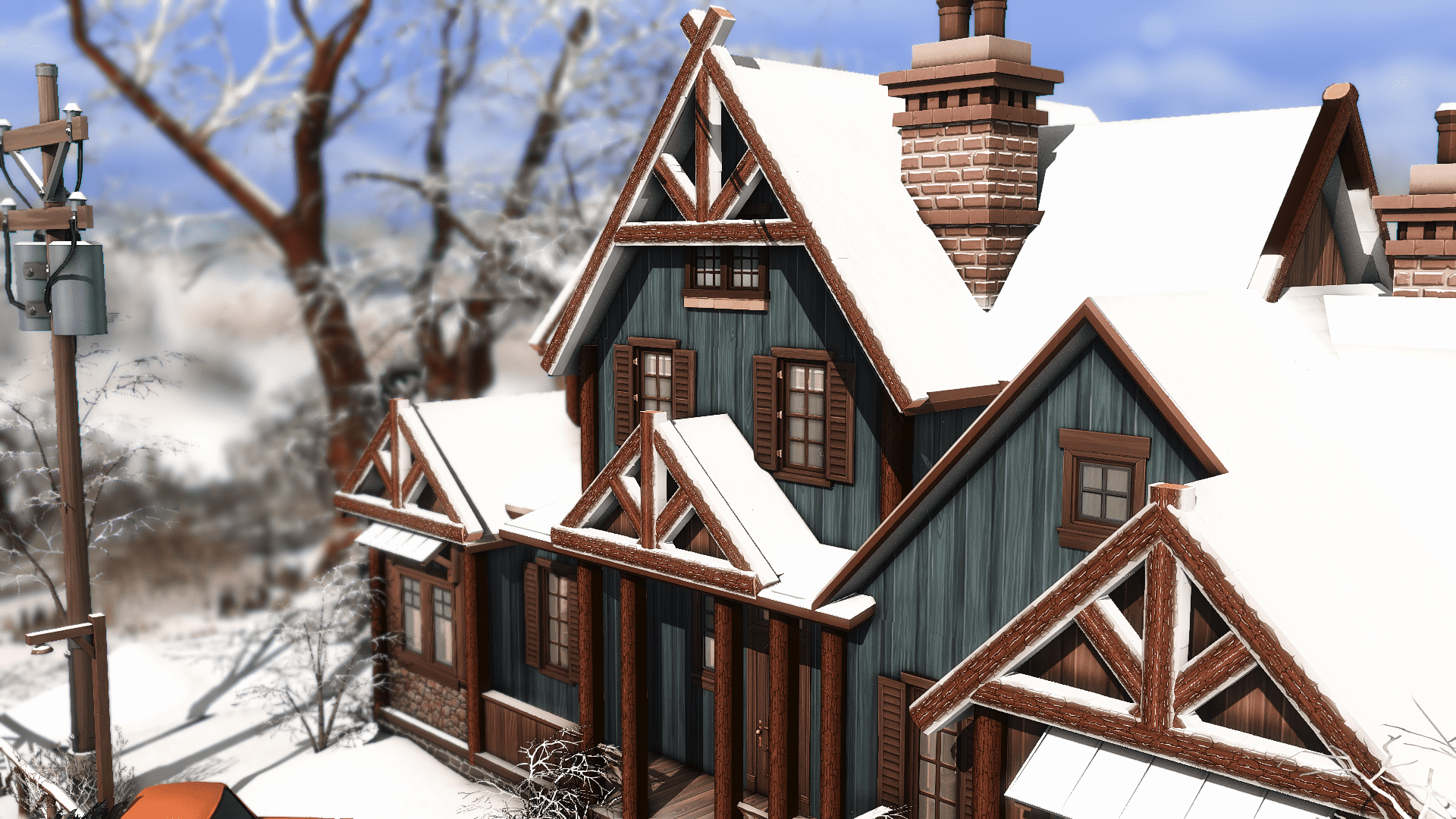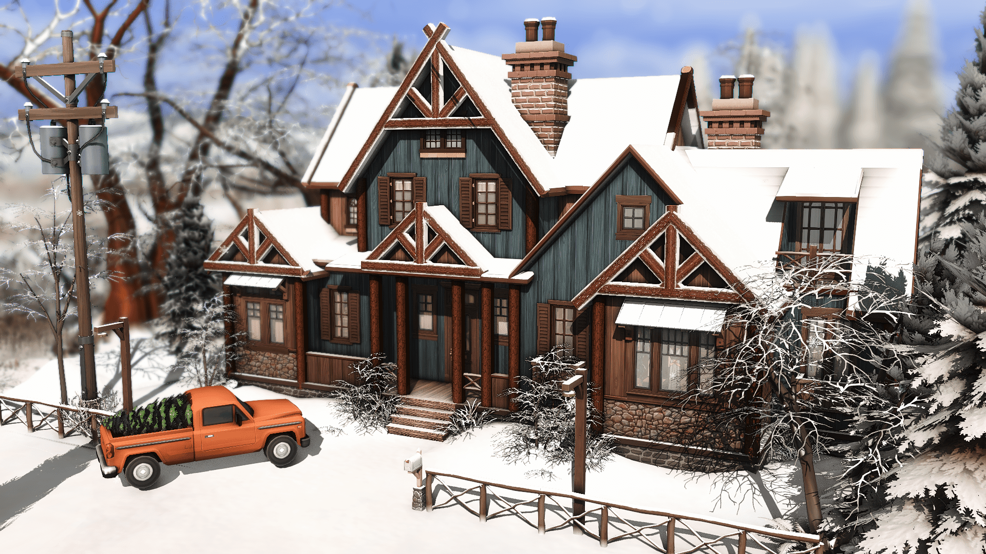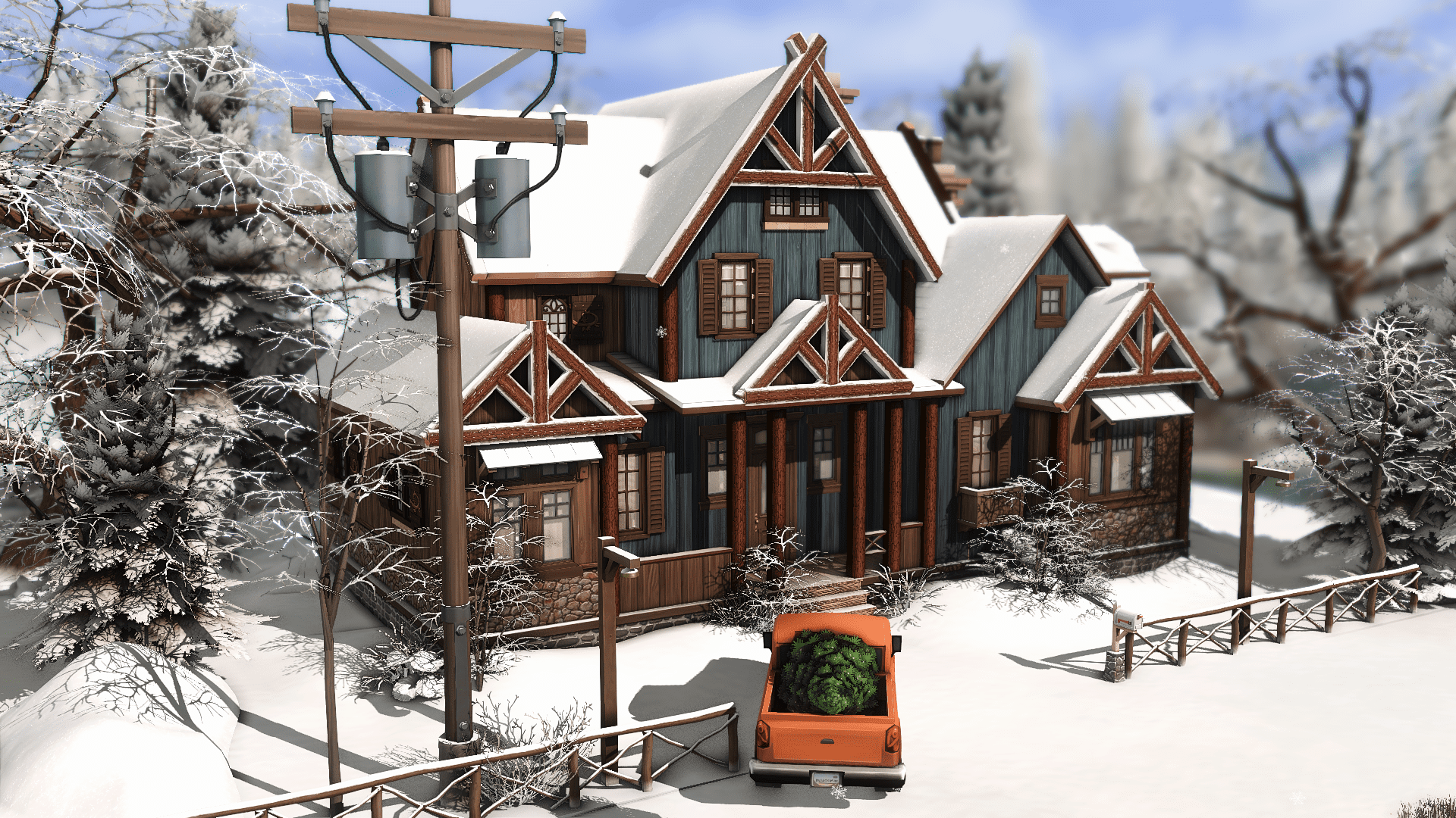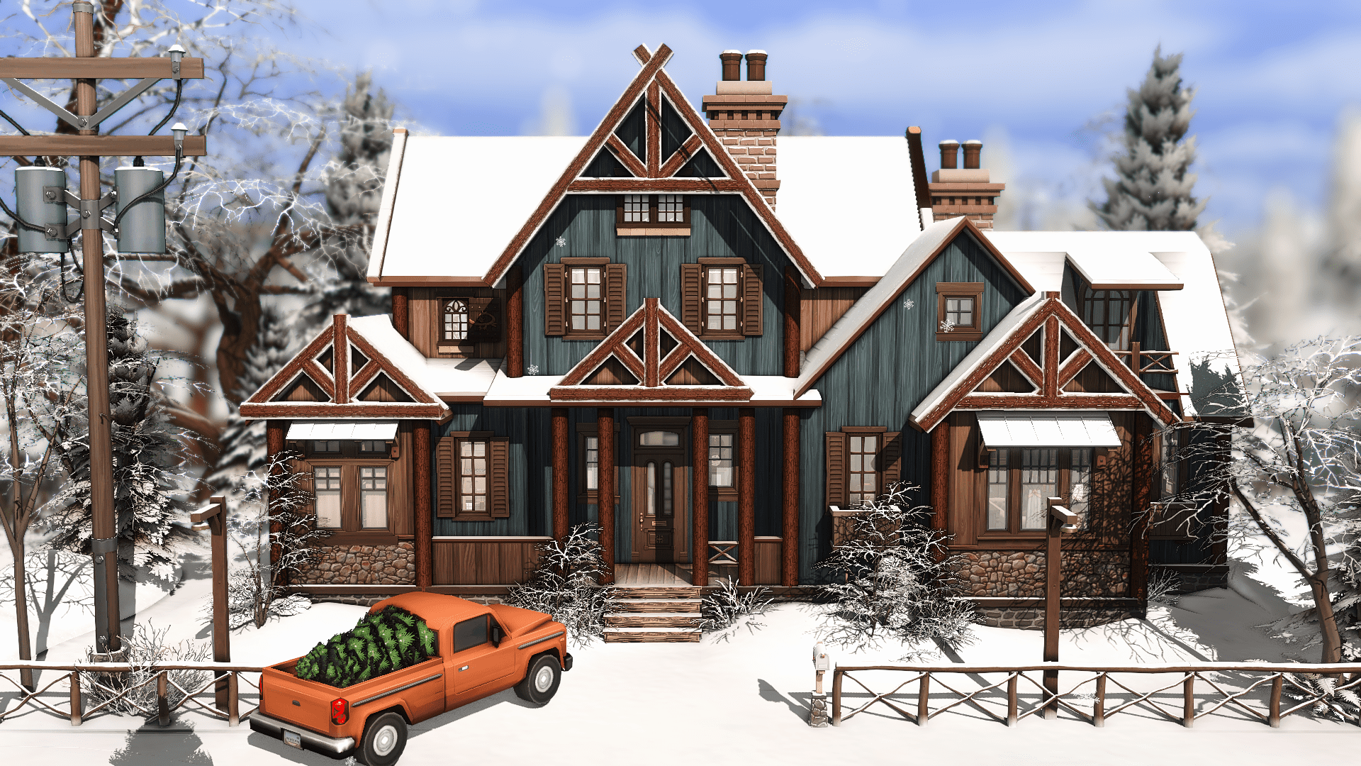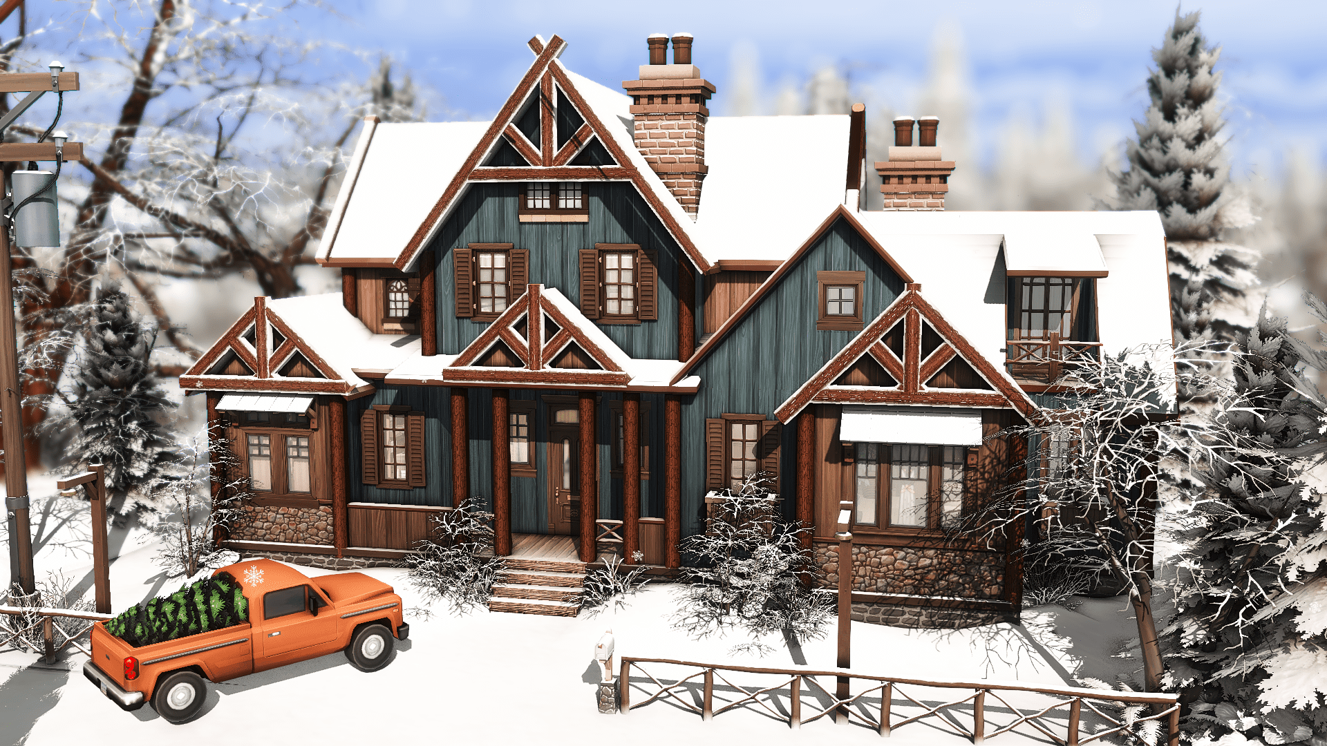 What about a rustic log cabin to your Sims enjoy the beautiful holiday season in Mt. Komorebi? This is the perfect place to rest and appreciate the winter season after a long day skiing. With 3 bedrooms, 2 bathrooms and, of course, a lot of fireplaces, this house is waiting for your family to give them the best moments.