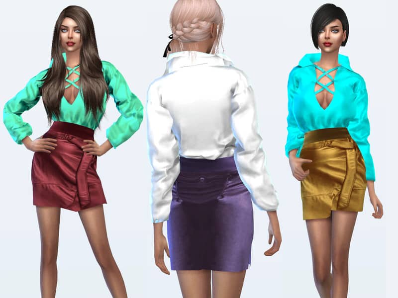 Our database contains only the highest quality Sims 4 mods that meet the most stringent requirements, like Satin blouse and leather skirt Sims 4 Mod. This guarantees that our visitors have access to the most exclusive and useful files.