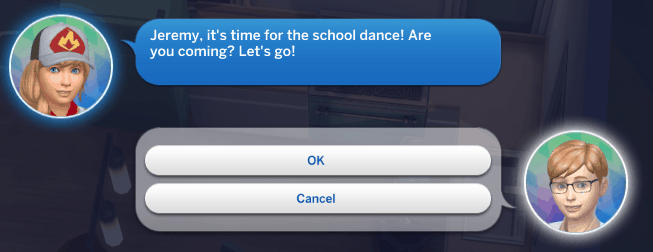 Purchase a ticket to the School Dance (available only to children on the computer) on Thursday-Saturday nights between 5-7pm. A friend will call when it’s time for the dance and invite your sim to go with them. You can only attend a dance once a sim week. Dances take place after 5pm and lasts about 2-3 hours.