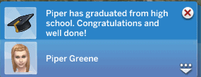 Schedule graduation by “Reserving Graduation Tickets” (available only to teens on their birthday and the day before). After reserving tickets, like in the Sims 3, everyone in the family will get the day off to attend the ceremony (unless someone is already at work in which case you need to bring them back first) and celebrate the grad. They will receive a notification and from there the sim can choose who’s accompanying them to graduation and direct them to attend the ceremony. They have chance, based on their final grade, to be valedictorian or graduate with honors. Valedictorians will get a boost in learning all Adult skills!