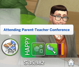 Parents can sign up on the computer for parent-teacher conferences with their child’s teacher. Use the computer to sign up and receive a notification when it’s time to attend. The Sim parent can go alone or with the other parents. Conferences are available Monday-Friday after 4pm. Conferences can only be scheduled once a sim week by one parent at a time. So technically you could have two conferences by choosing a different parent. Attending conferences will raise the Parenting Skill.
