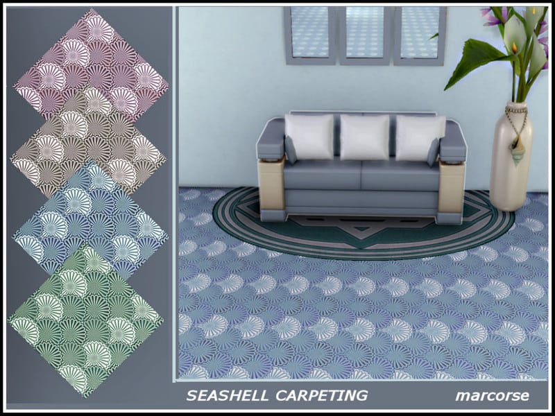 Retro scallop-shell carpeting. 4 colourways. Found under Carpet. Created in the base game. for everyone.