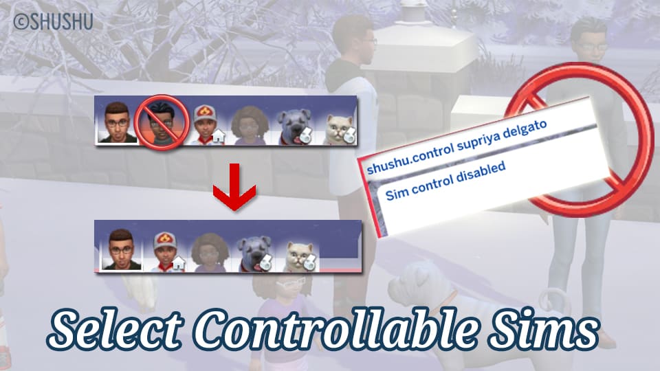 An uncontrollable sim would not show up in the ‘Household’ tab in the sim info/picker panels. Uncontrollable household sims are technically still in the household, but I guess this ‘Household’ tab has something to do with the controllability. You will have to find these sims in other tabs like ‘All’, ‘Friends’, ‘Romance’, etc.