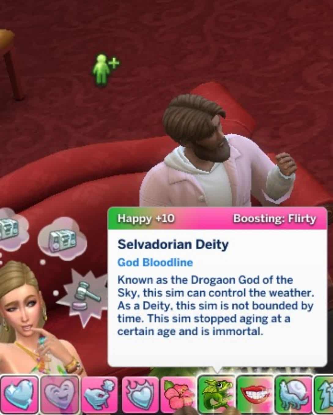 -Sims near you will get emotion buff – flirtry and happy