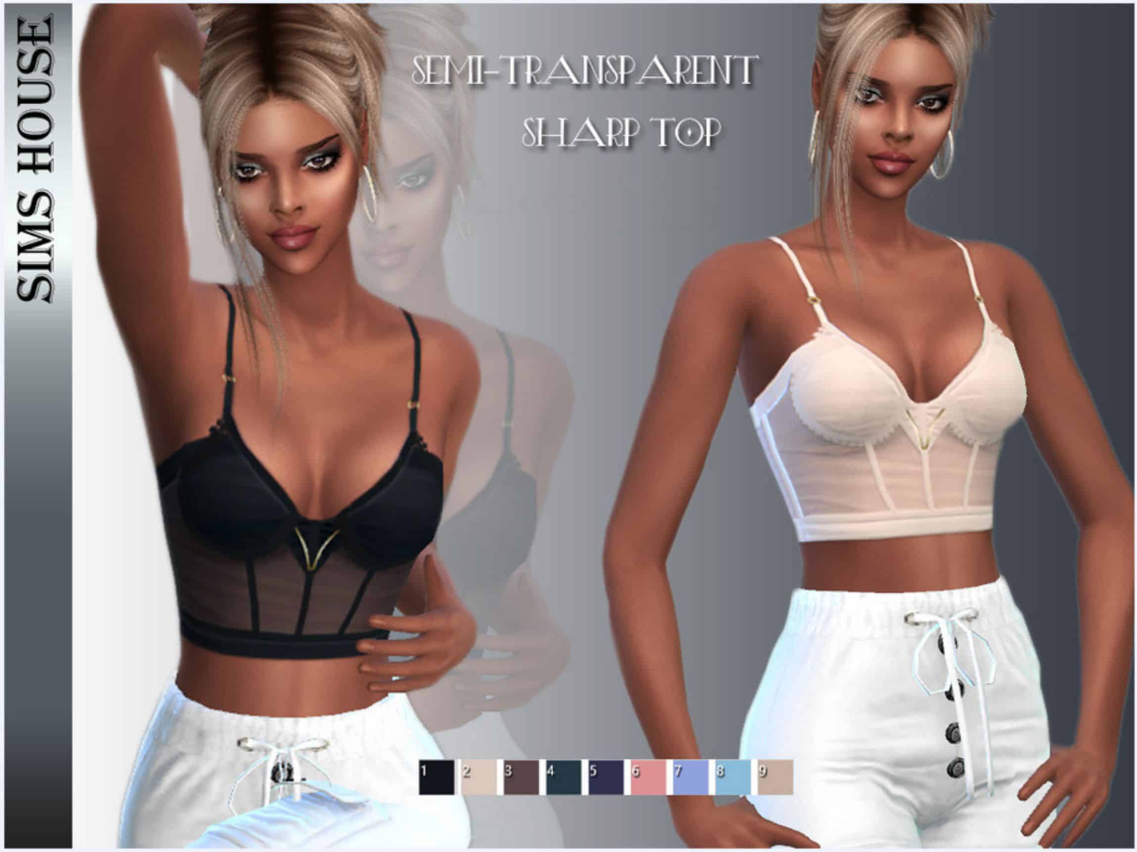 Our database contains only the highest quality Sims 4 mods that meet the most stringent requirements, like SEMI-TRANSPARENT SHARP TOP Sims 4 Mod. This guarantees that our visitors have access to the most exclusive and useful files.