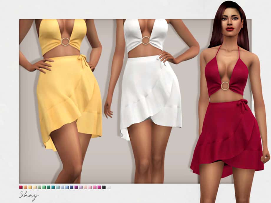 Cute wrap skirt available in 20 colors, with matching top found under the Recommended tab. For teen, young adult and adult sims.