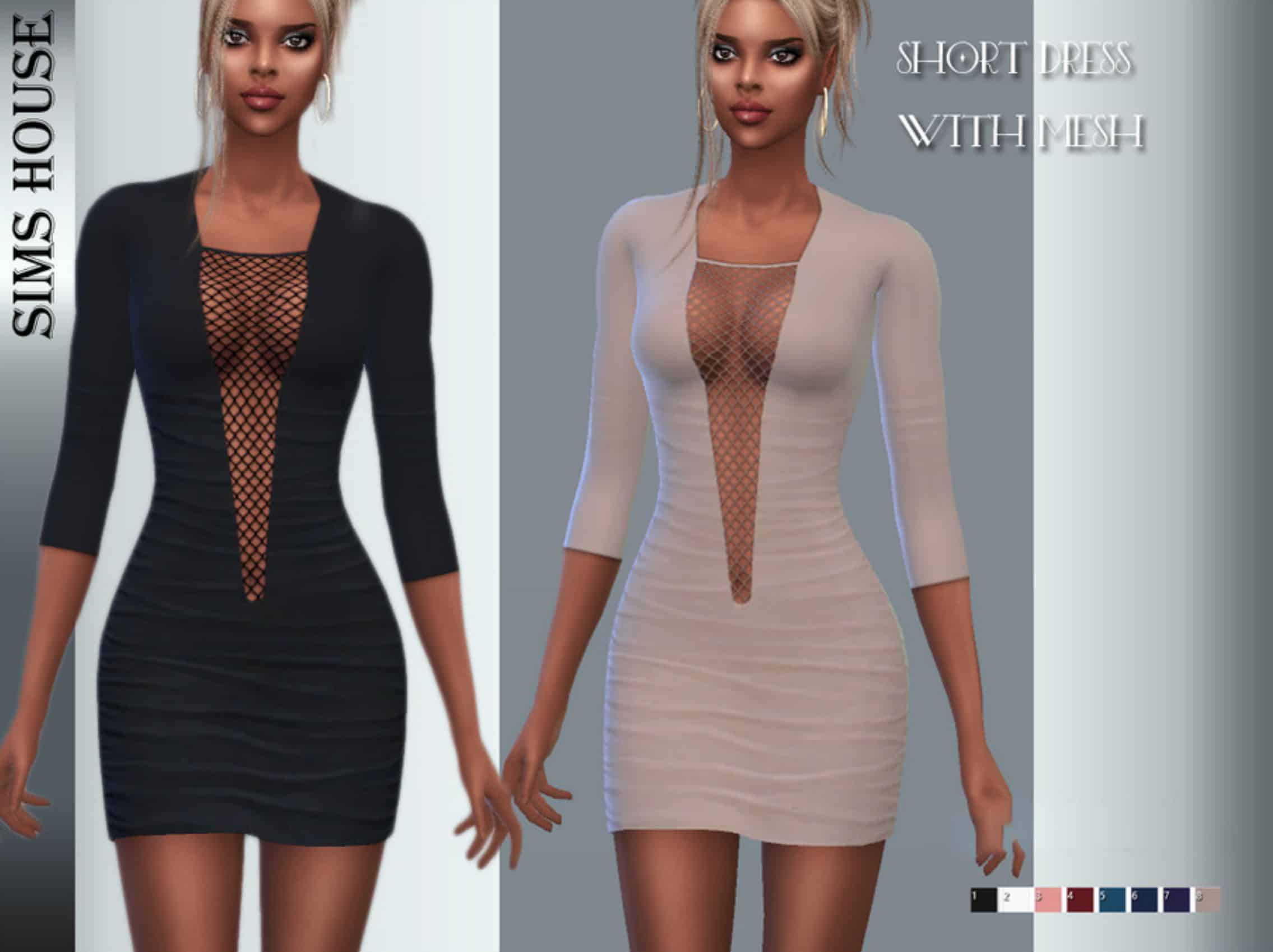 Short dress with mesh front for The Sims 4.