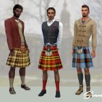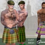 This file is created from a base game women’s skirt. The mesh was altered slightly in Blender to accommodate the sporran and belt. Belt may clip through some tops.