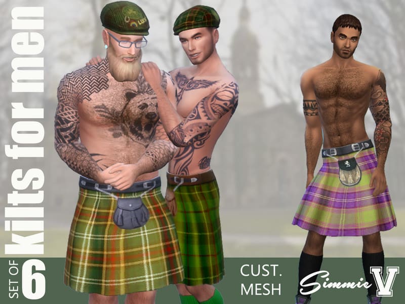 This file is created from a base game women’s skirt. The mesh was altered slightly in Blender to accommodate the sporran and belt. Belt may clip through some tops.