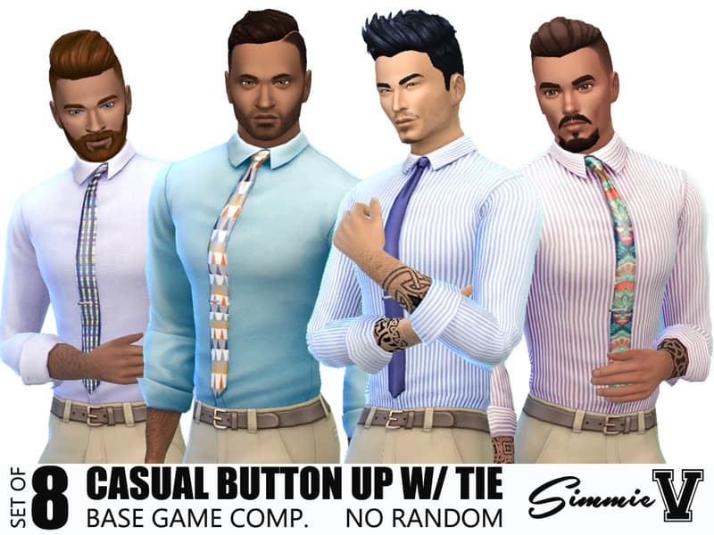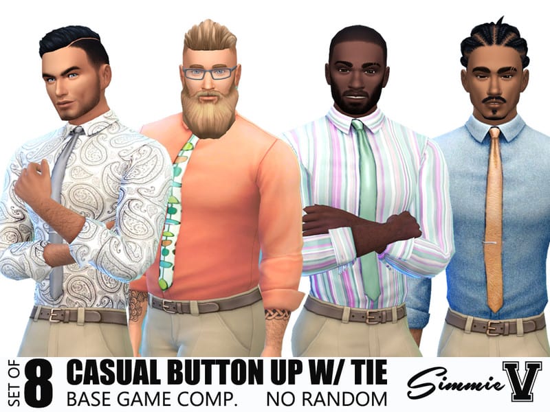Our database contains only the highest quality Sims 4 mods that meet the most stringent requirements, like SimmieV Long Sleeve button-up w tie Sims 4 Mod. This guarantees that our visitors have access to the most exclusive and useful files.