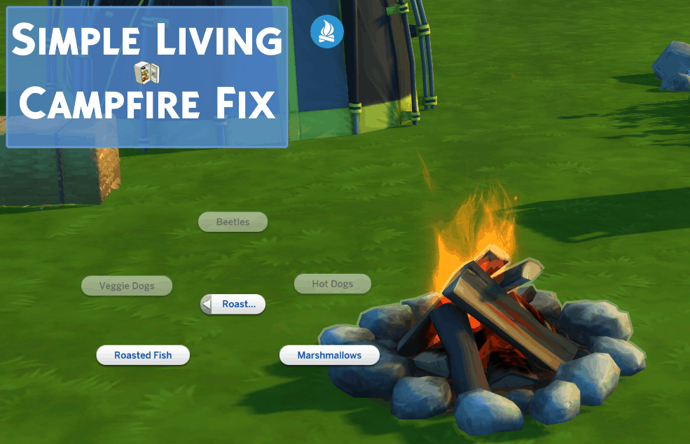 As with a great many things in The Sims 4, the “Roast…” interaction compatible with the Simple Living lot challenge was implemented but never added to the campfires of Outdoor Retreat. This meant that the Campfire was unusable to cook when that lot challenge was in use. Using the XML Injector, this mod adds the required interaction to the campfires.