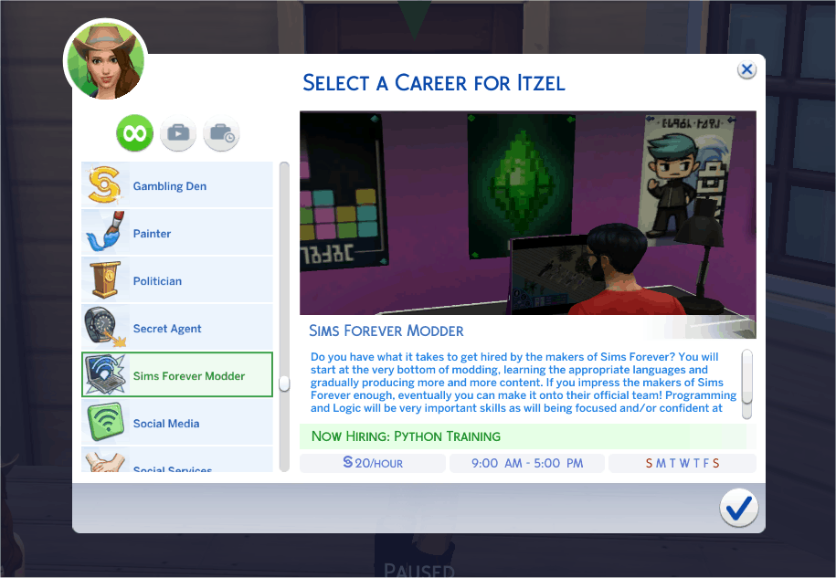 Do you have what it takes to get hired by the makers of Sims Forever? You will start at the very bottom of modding, learning the appropriate languages and gradually producing more and more content. If you impress the makers of Sims Forever enough, eventually you can make it onto their official team! Programming and Logic will be very important skills as will being focused and/or confident at work.