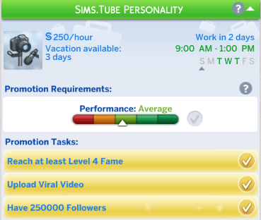A bonafide Sims.Tube Celebrity in {M0.his}{F0.her} own right. With fame, money, deals, and more, {0.SimFirstName} has made it to the top and {M0.his}{F0.her} influence knows no bounds! What’s next? Commercials? TV? Movies? You name it!
