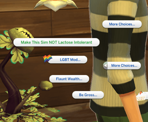 “Lactose Intolerant” no longer has to take up a personality slot in Create a Sim. Your sims can have all three of their precious personality traits and still be a lactose intolerant if you think they should be. I wanted to make this mod as soon as I found out about the trait because lactose intolerance isn’t a personality.