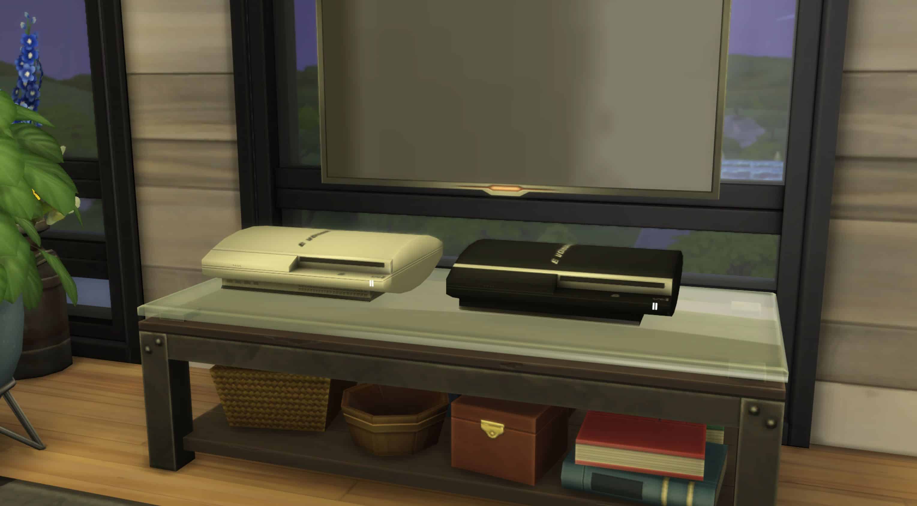 A while ago I said i was going to start making all the consoles for Sims 4, well a year later I’m starting it! Sony PlayStation 3 (fat) model, comes in two colors. Black or white. Tried to Maxis Match but its hard for me to make something simple look stylized, but i tried.