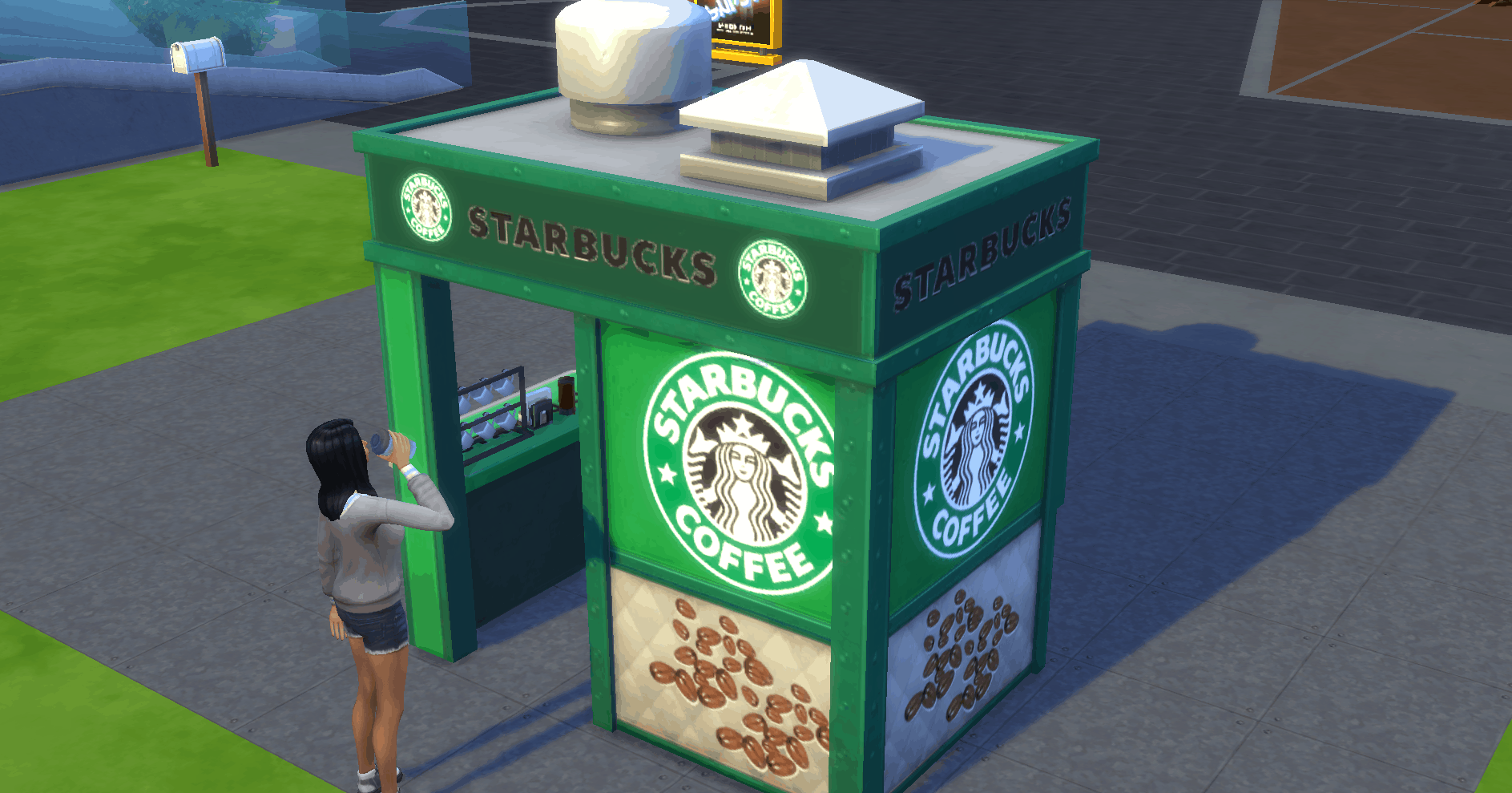 Note : You need the University Add-On to use it. This item is a recolor of the Britechester edition of the Coffee Stand.