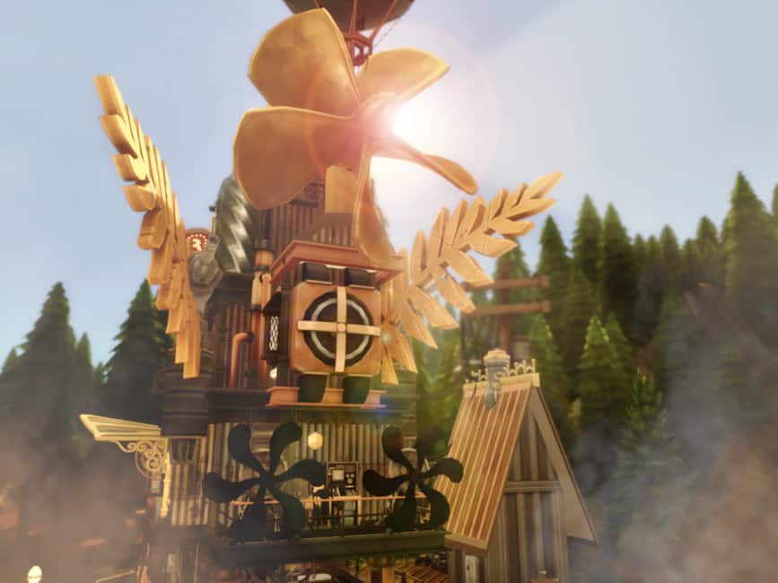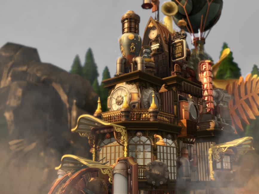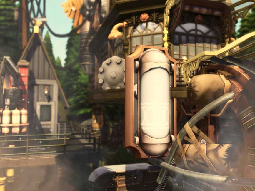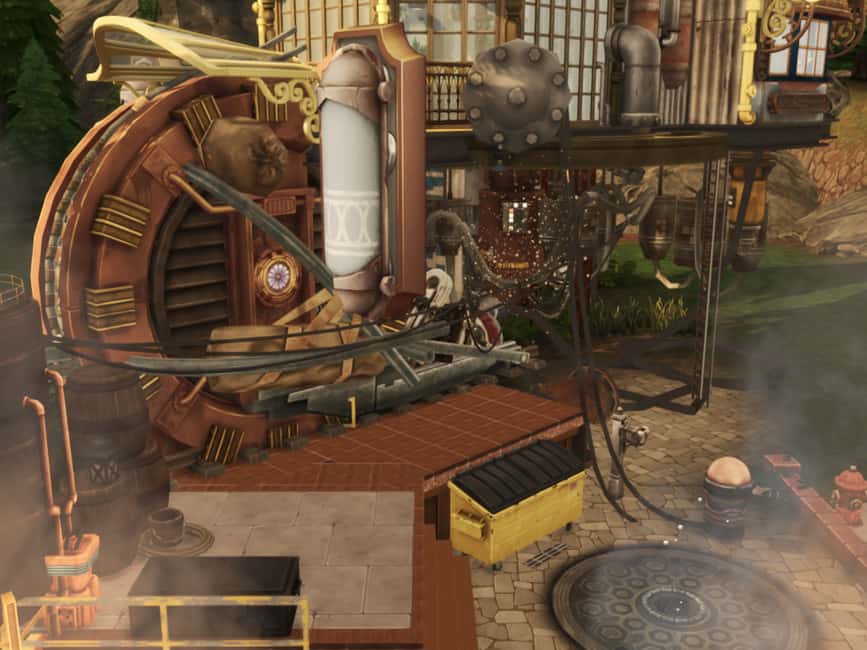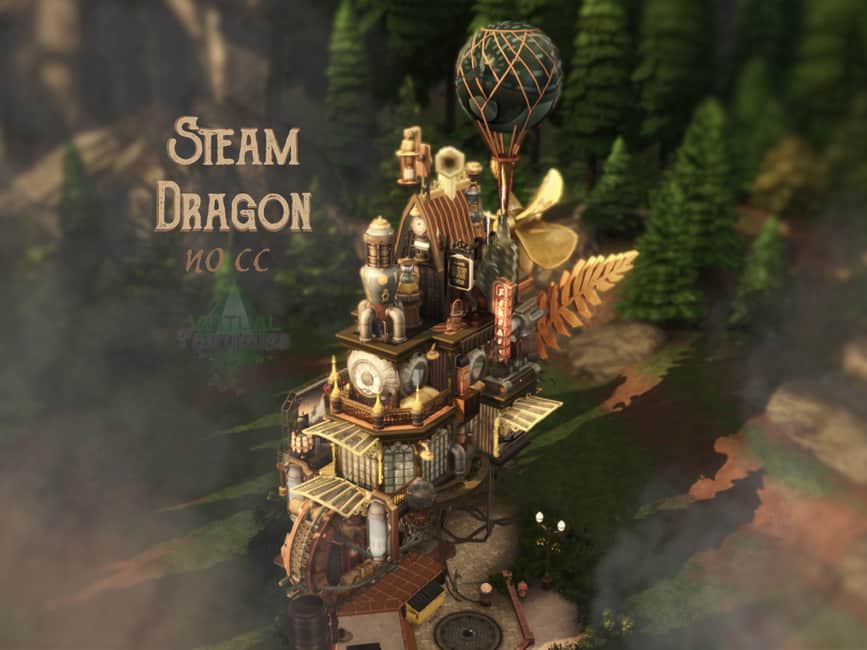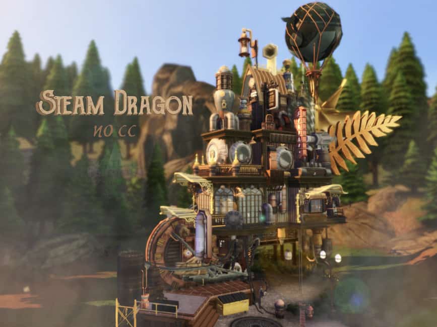 The machine never sleeps. Dust and smoke keep it alive and make it a liveable home. Who knows, where the Steam Dragon will fly next. Hope you like this steampunk build. There is space for around 3 Sims.