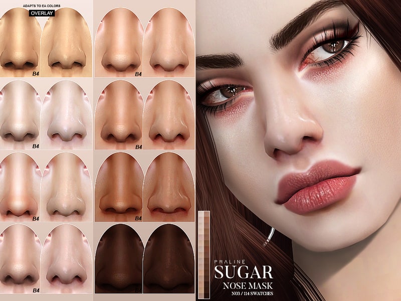 Nose mask for a soft and shiny looking nose in 114 different swatches, works for all ages and genders. Under skin details.