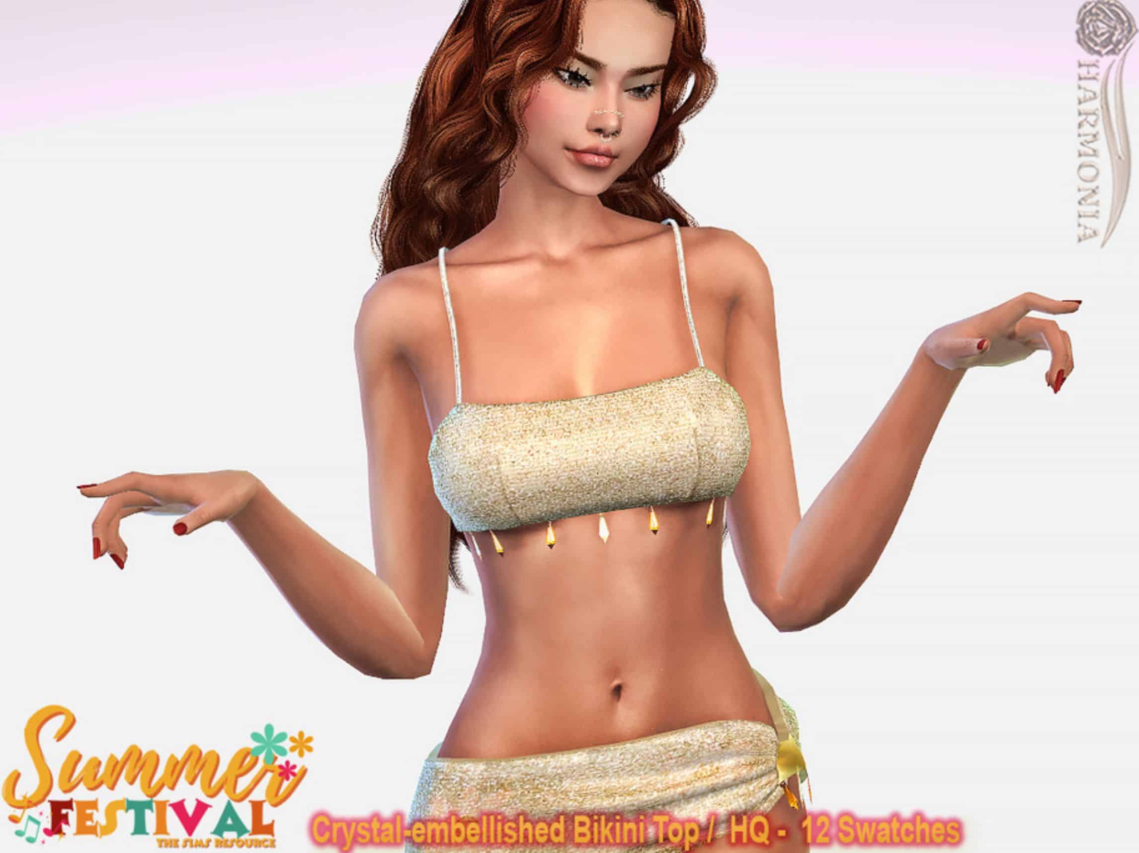 Our database contains only the highest quality Sims 4 mods that meet the most stringent requirements, like Summer Festival Crystal-embellished Top Sims 4 Mod. This guarantees that our visitors have access to the most exclusive and useful files.